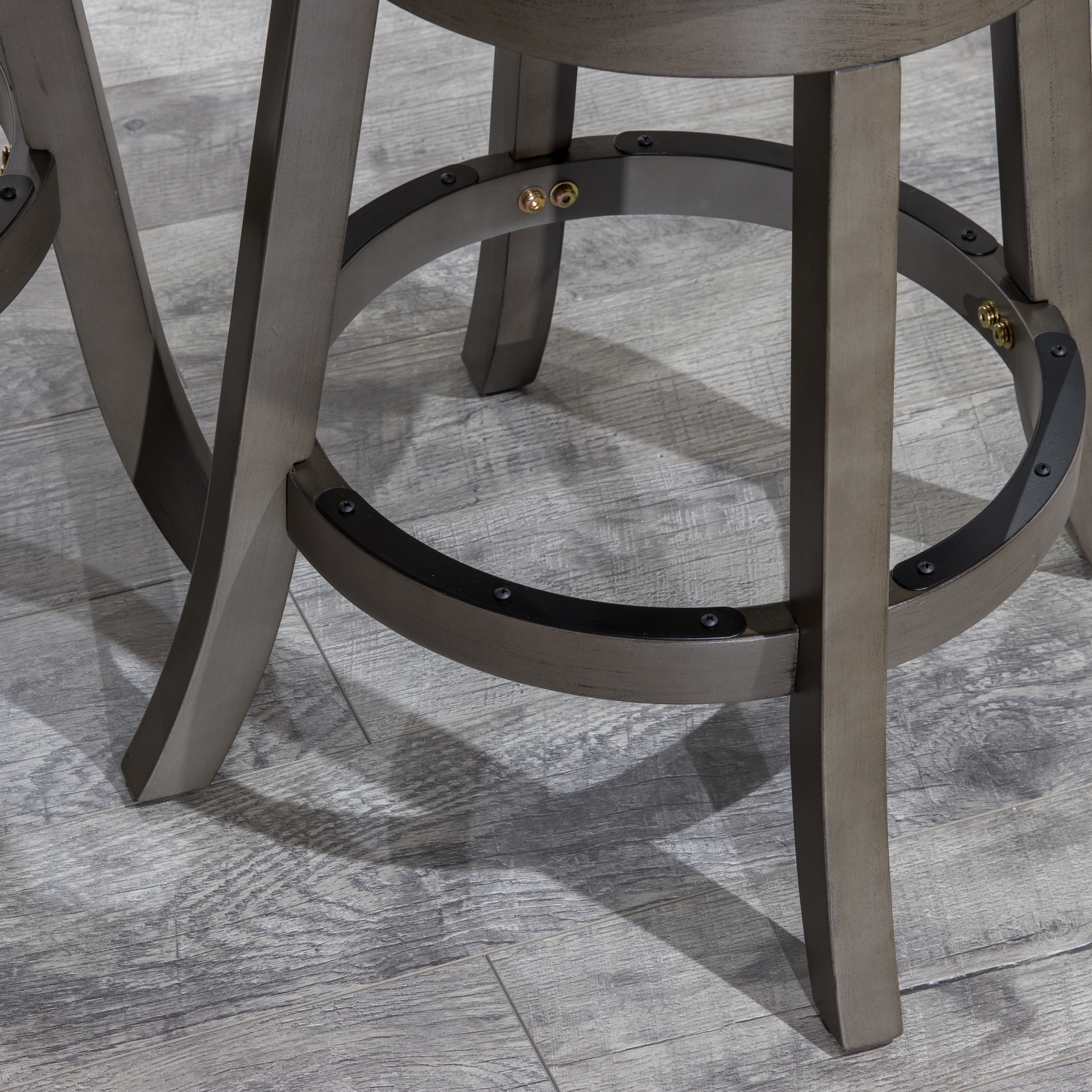 24" Counter Height Slat Back Swivel Stool, Weathered Gray Finish, French Gray Leather Seat