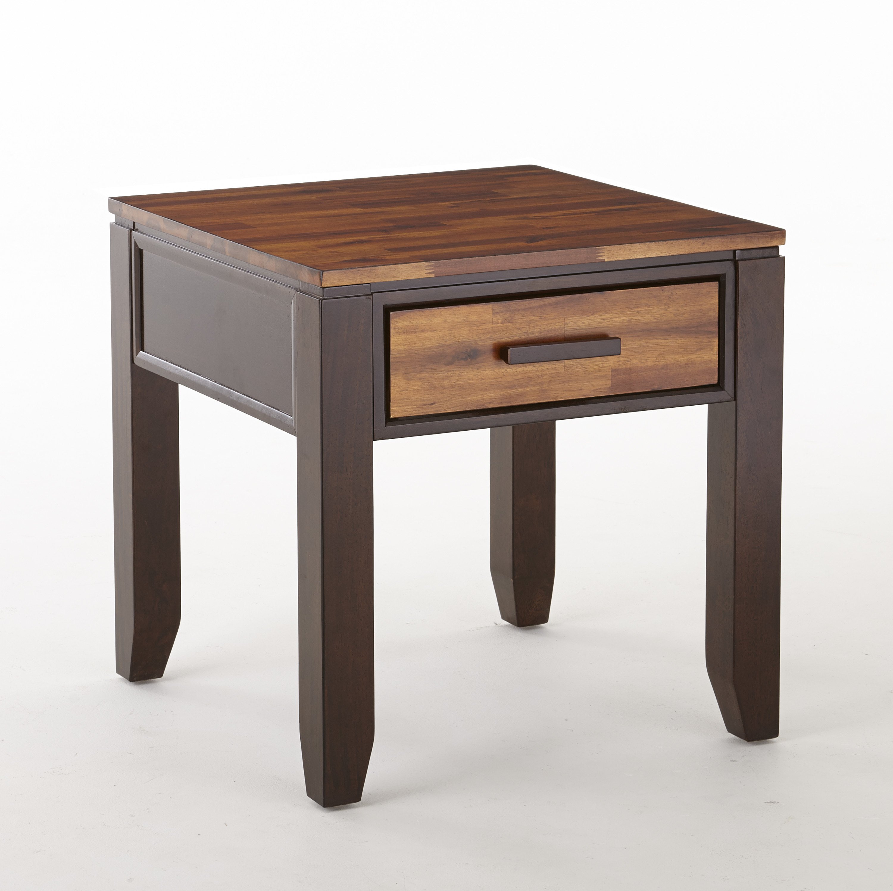 DimensionsCarton Dimensions L 33.5 x W 26.5 x H 9Features-Contemporary Style-Tongue and Groove JointsProduct DescriptionLet our End Table take center stage at your next gathering. This exquisite piece features a sophisticated design with a touch of functionality. With its one drawer for storage, you can easily keep your essentials within reach. The two-toned cordovan cherry finish adds a charming and elegant touch to any room. Whether you place it next to your favorite armchair or use it as a bedside table, this End Table is sure to enhance the aesthetic appeal of your space while providing practical storage solutions.
