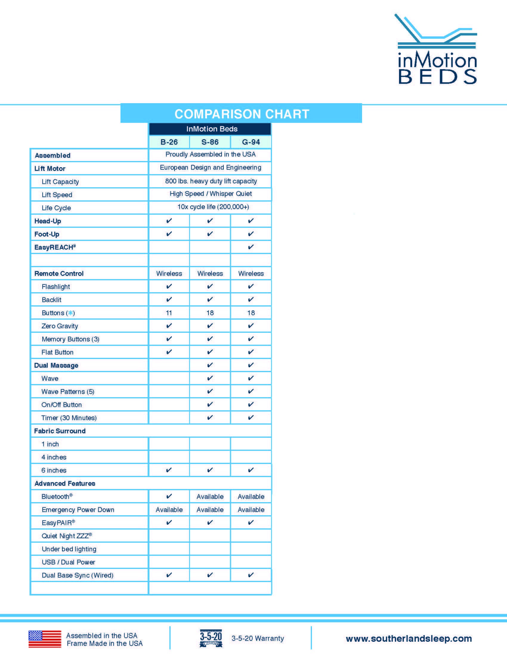 WHY AN ADJUSTABLE BED?Our InMotion® Lifestyle Sleep Systems create a custom sleep experience with ultra quiet motors, one of the highest lift capacities in the industry with multiple programmable options.Quality Craftsmanship 800 pound lift capacity