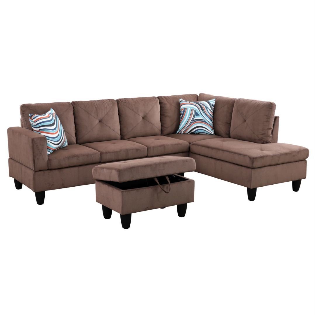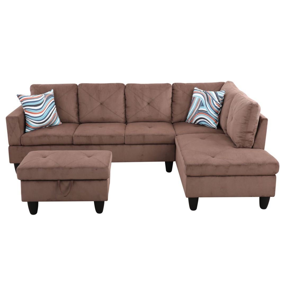 Brown Corduroy Fabric Living Room Sectional Sofa