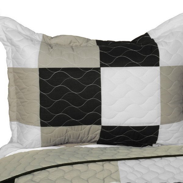 [City Light - B] Vermicelli-Quilted Patchwork Plaid Quilt Set Full/Queen