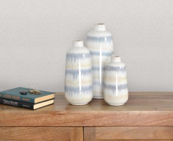 Set of 3 Stackable Round Outdoor Flower Pot Planters with Drainage Holes in Grey