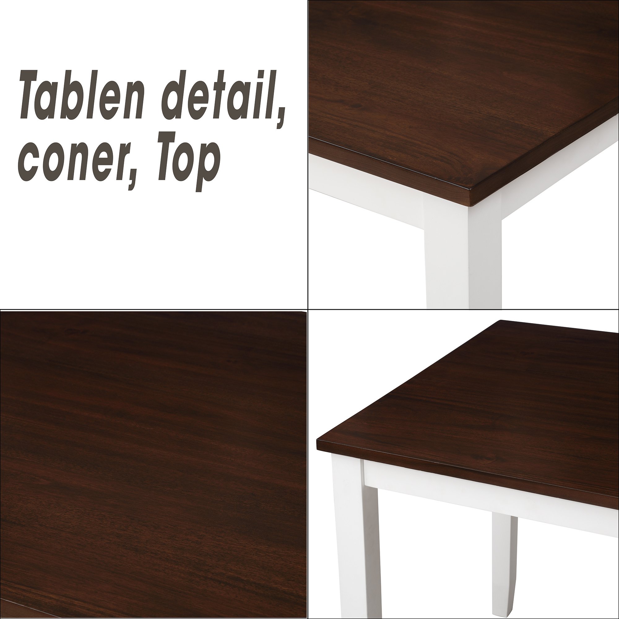 4.Perfect dining set for great experience:This home kitchen dining set is ideal for everyday dining and gatherings of family and friends. The rounded corners and smoothly polished edges are safe for kids. This table and chair set is built to last,enabling years of fond memories.