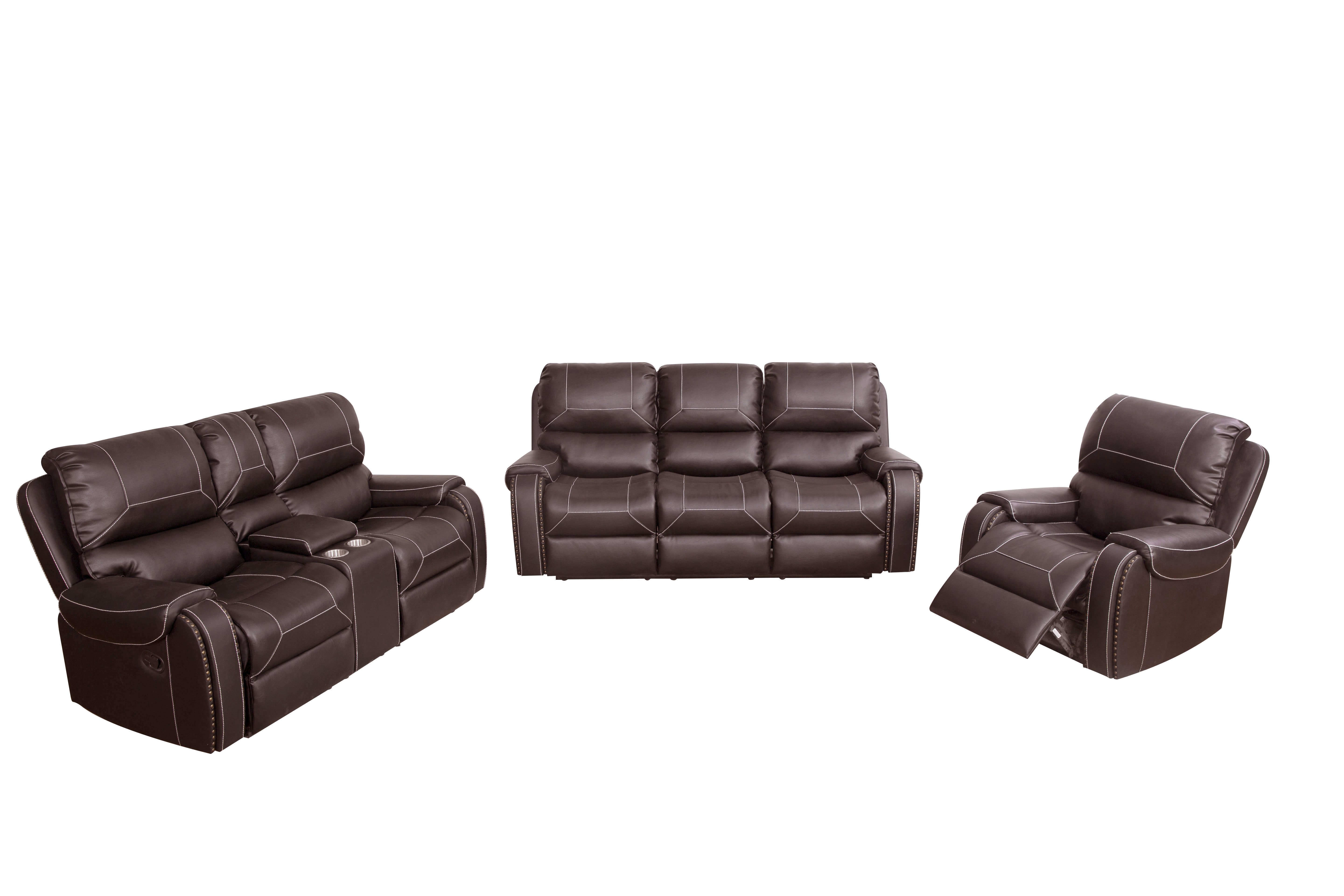 Faux Leather Reclining Sofa Couch Loveseat Sofa for Living Room BrownLUXURY RECLINING SOFA SET:This recliner sofa brings classic style and functionality to your living room. This sofa is made of solid wood frame and features medium density sponge and thick padded cotton cushions, and quality faux leather in a solid color. Copper nail decoration on the arms, this Reclining sofa completes the look in any traditional or rustic setting. MODERN DESIGN & MULTIFUNCTIONAL:The 3-seat sofa is with a drop down table, with it you can release your hands at any time. The loveseat recliner has storage space in the middle, put small items in it, won't affect the sofa's beautiful look and is also very convenient. The classic wingback design furniture set is ideal for your living room, lounge, home theater or office.RECLINING & ROTATION DESIGN:The loveseat sofa with 2 reclining seats, and the single sofa not only has recline function but also has 360° rotation function.Double recliner with storage space 3-seats reclining sofa with drop down table ComfortableProduct TypeGeneral ItemMain MaterialPUCustomizeYesMain ColorBrownProduct Dimensions74.01*37.79*40.94inch
