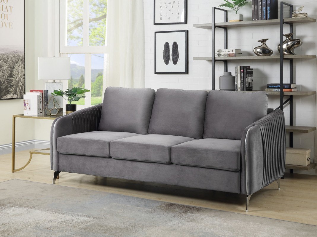 Home > Hathaway Gray Velvet Modern Chic Sofa Couch
