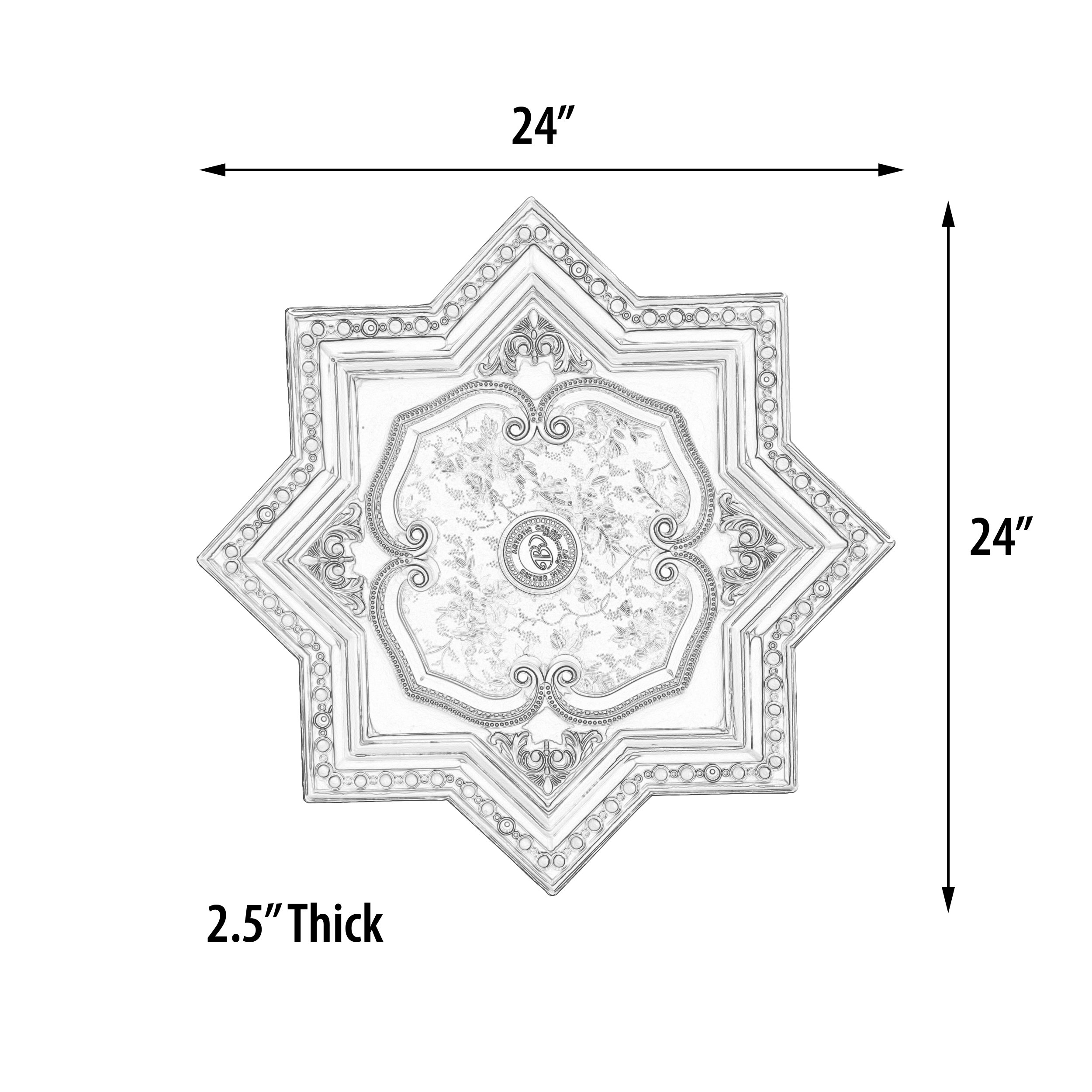Light weight and easy to install the medallion. Measures 24 inches in diameter. Features an elegant finish of white on gold background in the shape of an eight pointed star.