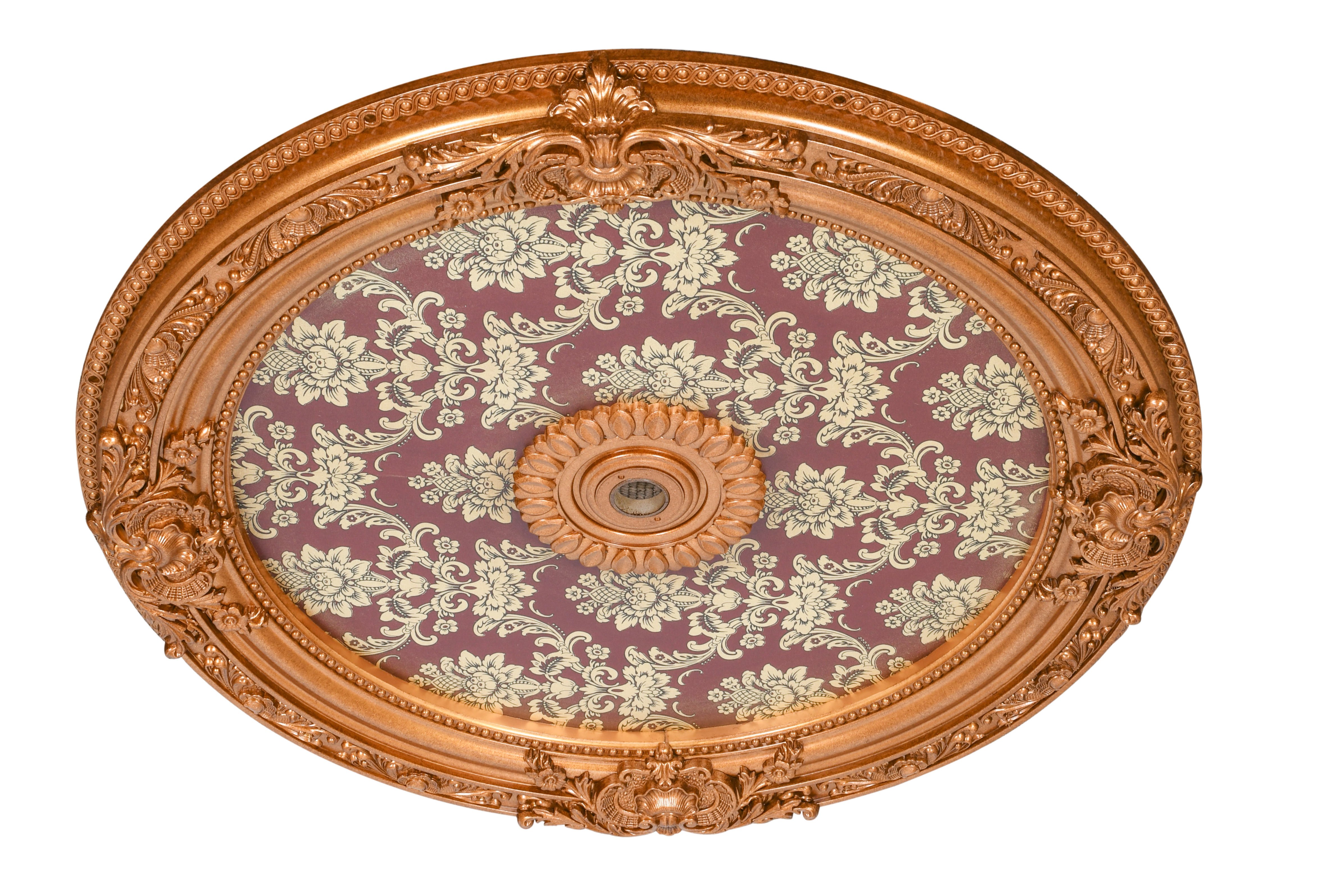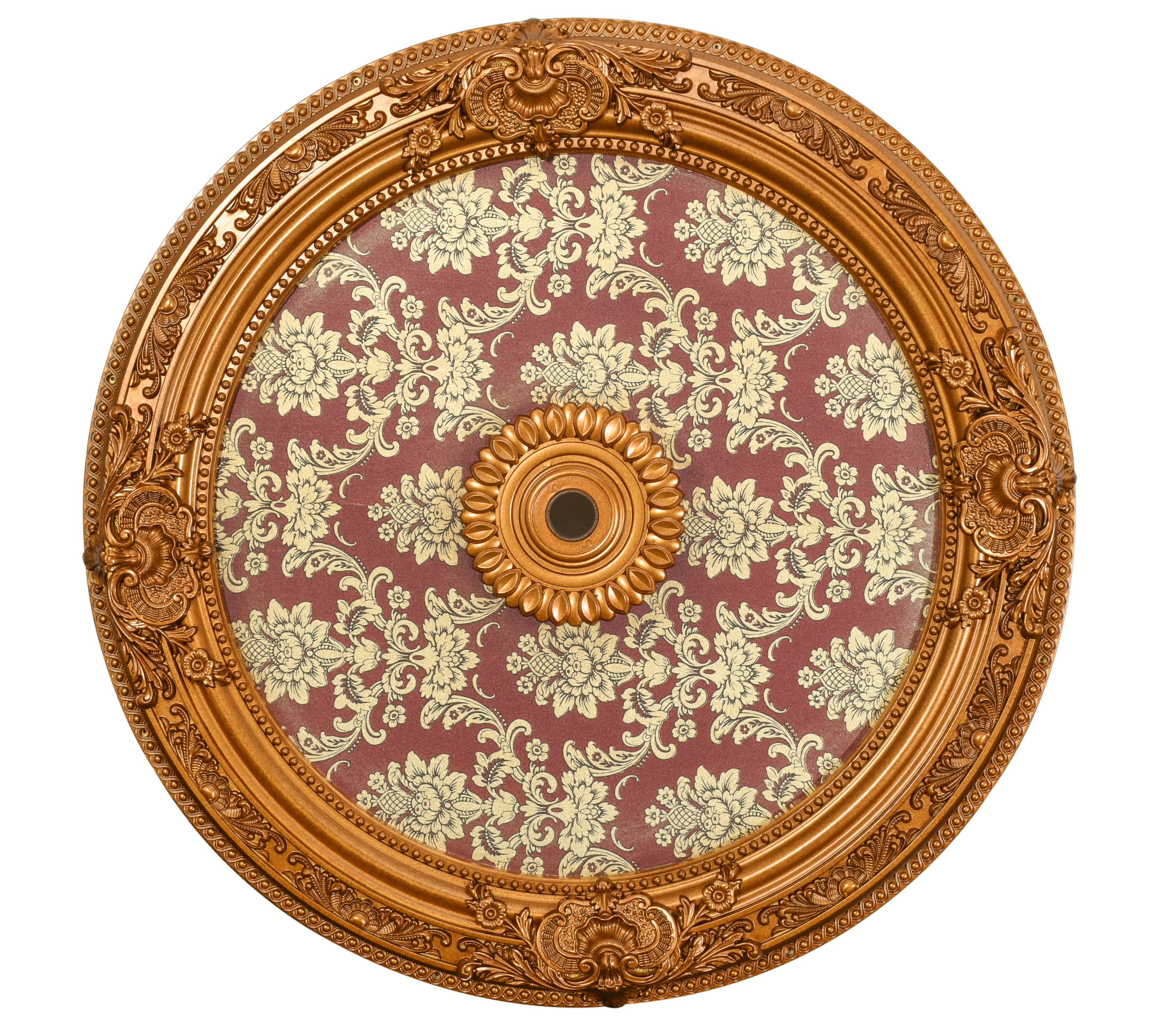 The Brocade Round Chandelier Ceiling Medallion 36 Diameter is a favorite sized, fully assembled and intricately finished Ceiling Medallion. The finish is beautiful and offers an old world warmth in its Design. The finished outer frame of Antique Gold and White surrounds a rich Burgundy and Gold Brocade field. This completely finished Architectural Ceiling Medallion creates instant 3 dimensional detail to an otherwise boring plain ceiling. Also a crowning Elegance to a Chandelier Installation, which is often a good time to install your selected Medallion. The item comes fully finished out of the package and is Hand Cast in a lightweight Polystyrene that will never shrink, split or crack. Prior to Masterpiece Moldings creation of this Collection by AFD Home, the only way to have had an advanced ceiling with this level of design would have been a very expensive addition and an owner willing to take on an elaborate installation project, requiring carpenters, finishers, and in some instances even artists. One of the best parts about this item is that installation could not have been made easier, as the outer ring is created with a cabochon design allowing intermittent spaces specifically created as locations for your screws or hollow wall anchors, matching decorative caps are even provided that will cover the screw heads of your anchors and offer a complete professional looking install. A 1.5 inch center hole is provided for the installation of chandeliers and fans. The overall measurements are 36 x 3 x 36. Hollow wall anchors or installation screws are available at your local hardware store, as your need will vary depending on your ceiling.