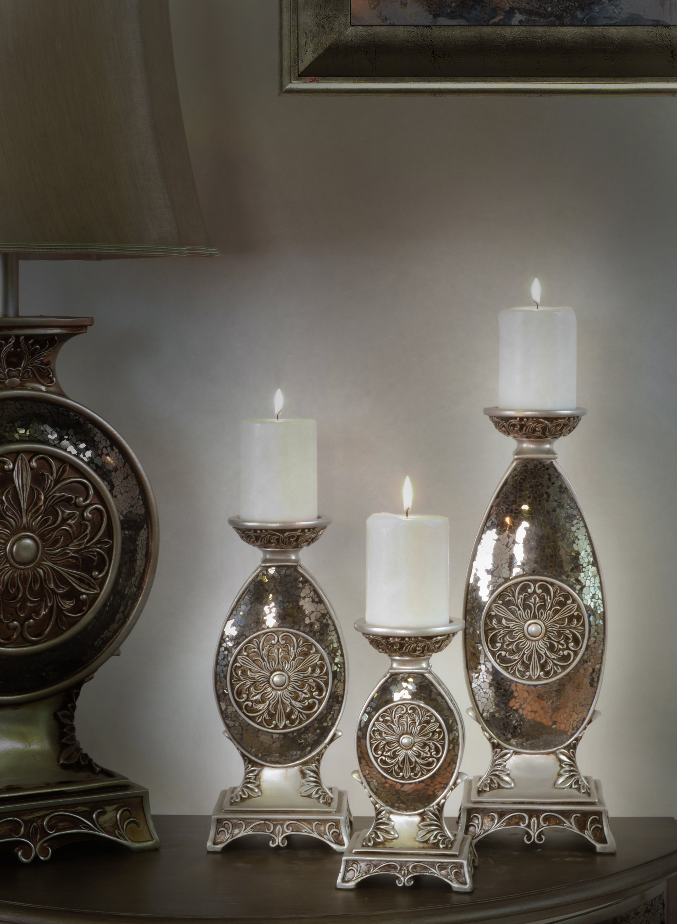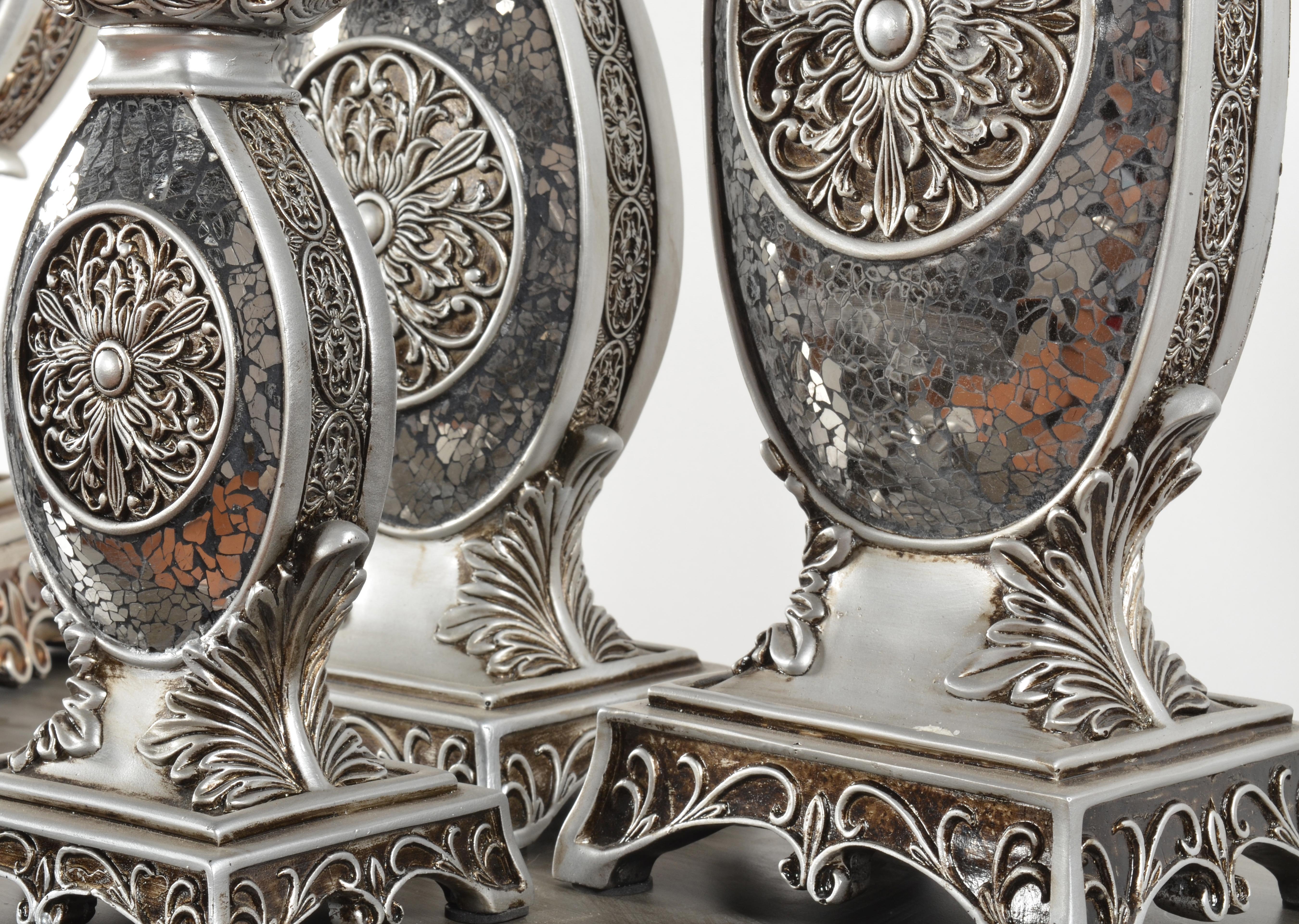 From the delightful Decorative Accessories Collection, we present the Estrada Candleholders Set Of three. This set is all about beauty mosaic details. The Estrada Candleholders will help define your home decor style with top of the line elegance.