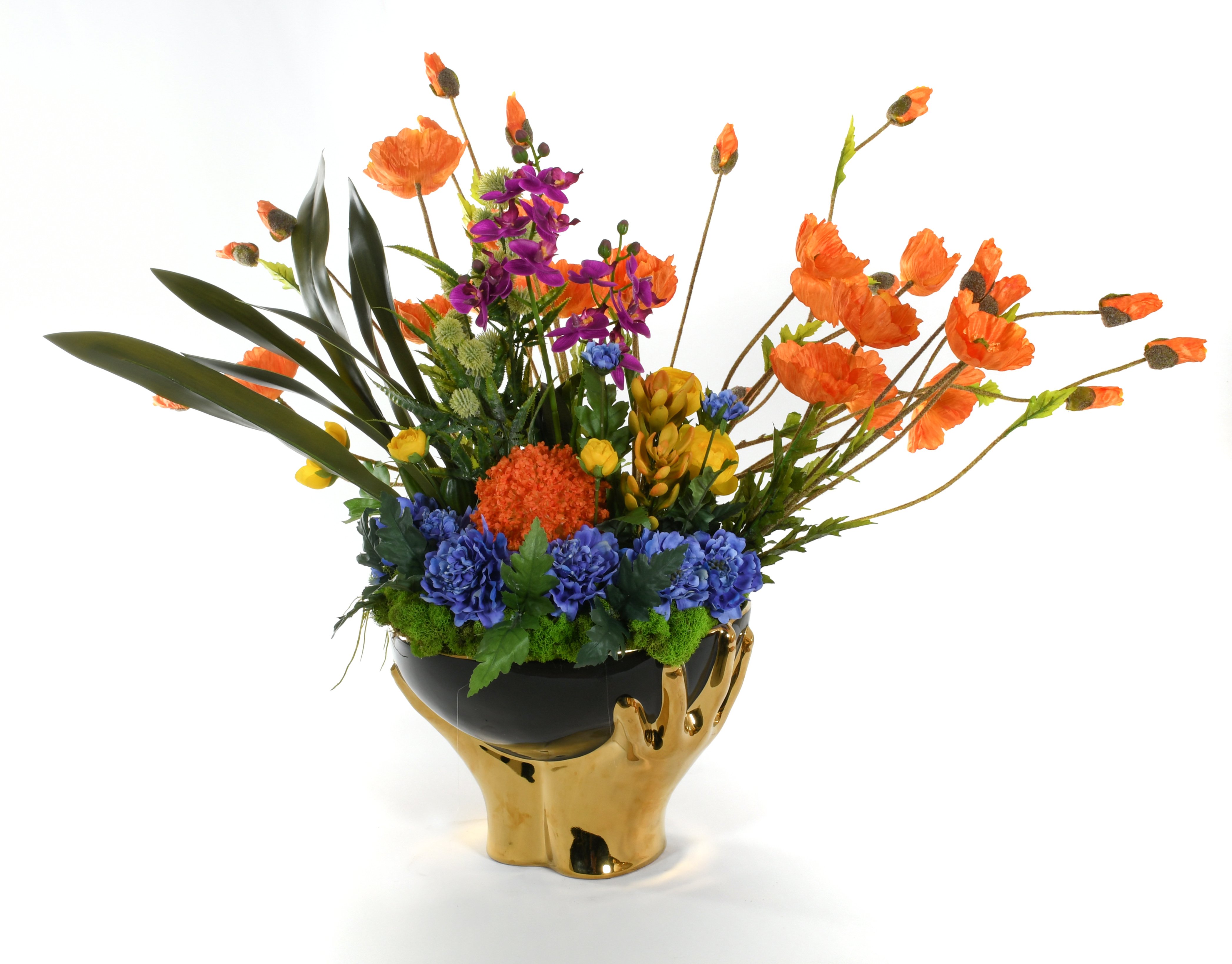 Poppy's in Black Bowl with gold hands  Poppy's in Black Bowl with gold hands  Poppy's in Black Bowl with gold hands