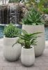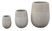 A Clean Design Planter Set of 3 with Stripe Accents in an Ancient Cement Finish. The set offers graduated sizes that arrive nested inside each other. A simple classic style, easily placed in a variety of styles from traditional to modern suitable for indoor or outdoor use, is hand cast in a durable fiberglass reinforced resin. The hand applied finish offers a current gray stone color resembling ancient cement. Another exclusive design by AFD Homes outdoor collection. No Assembly Required 19.50W x 19.50D x 28H 27LBS 14W x 14D x 19.50D x 14LBS 10.50W x 10.50D x 14H 9LBS Internal Dimensions: 16.50x16.50x27.50 11x11x19 7.50x7.50x13.50