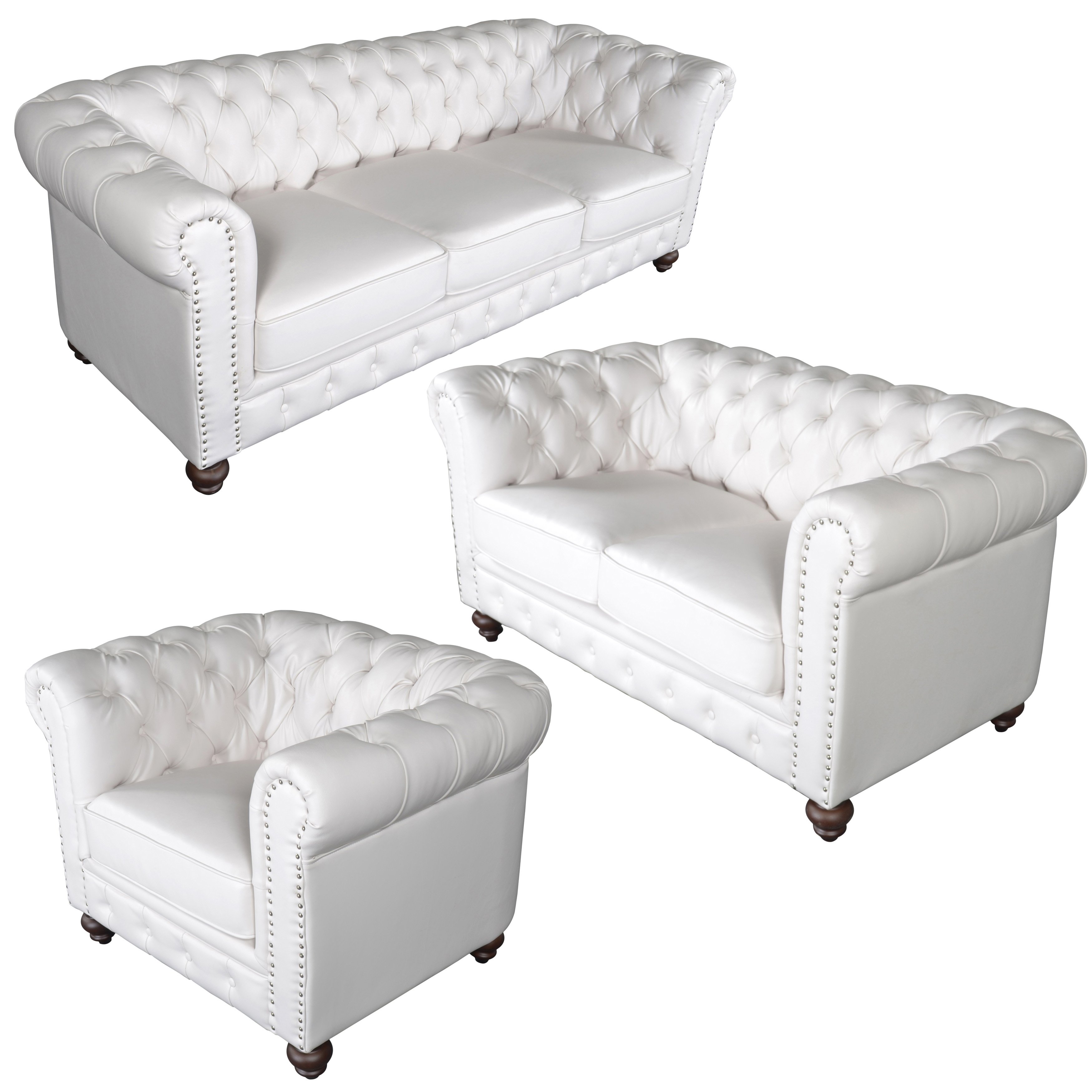 Classic Chesterfield White Sofa Set of 3 Classic Chesterfield White Sofa Set of 3 Classic Chesterfield White Sofa Set of 3