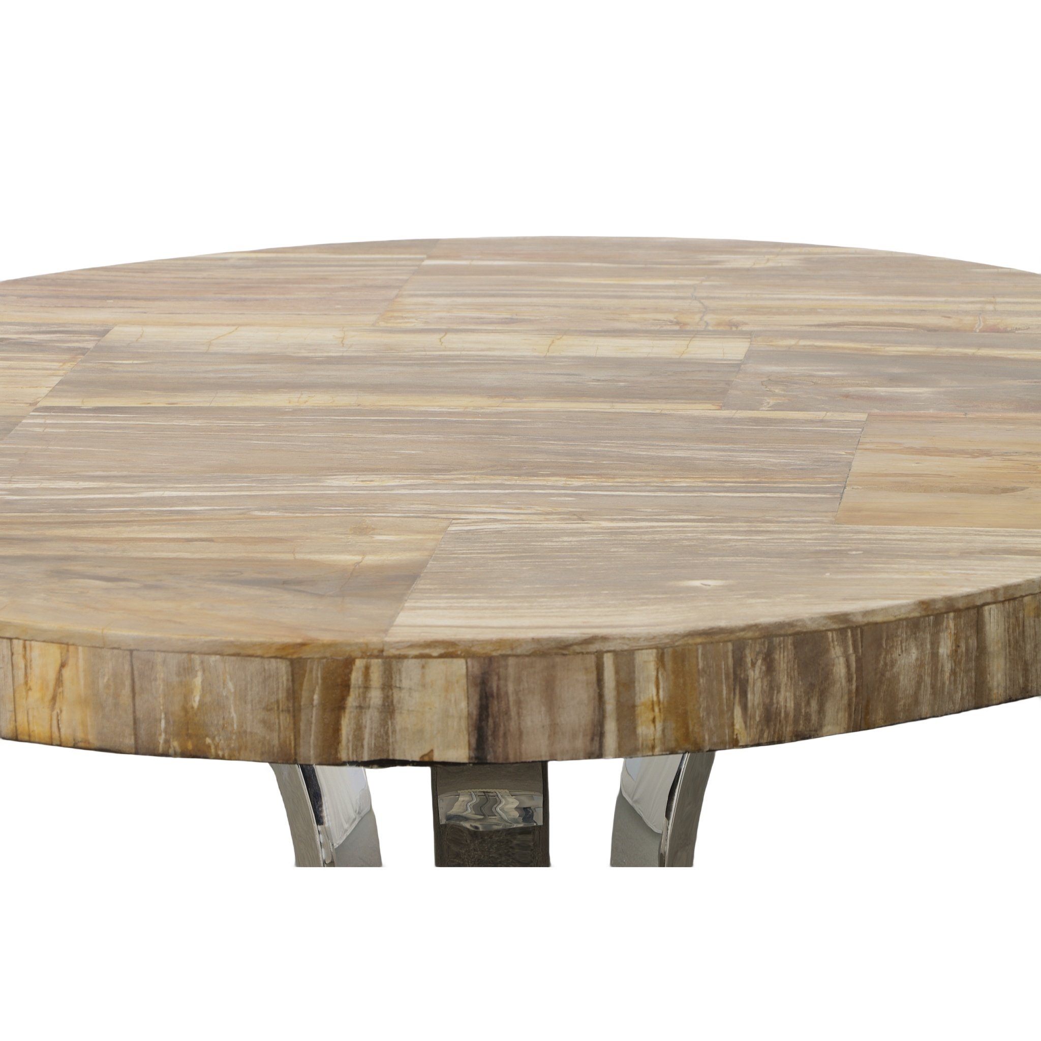 60 Inch Round Petrified Light Wood Table With Stainless Base