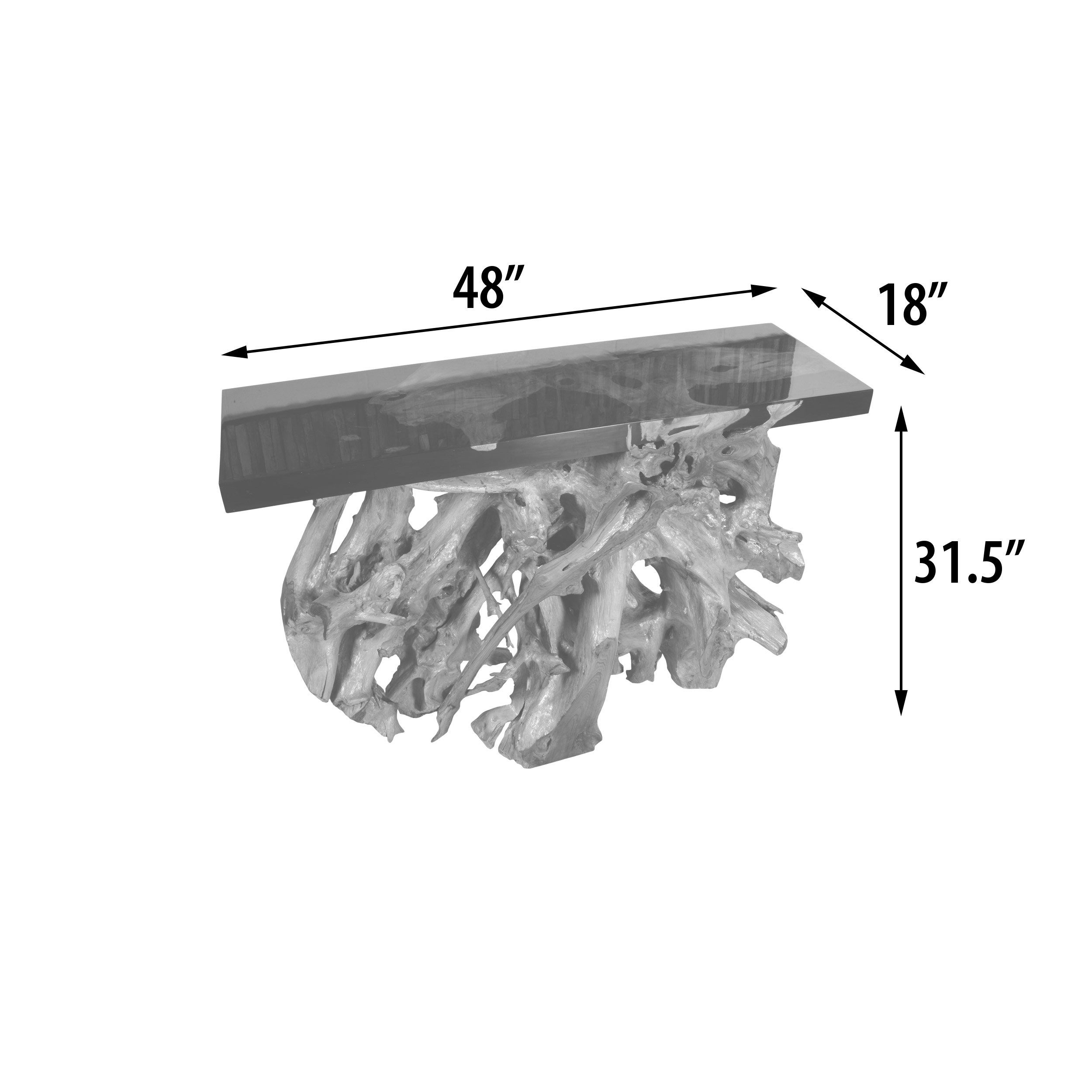 48 Inch Teak Root Console Black Resin