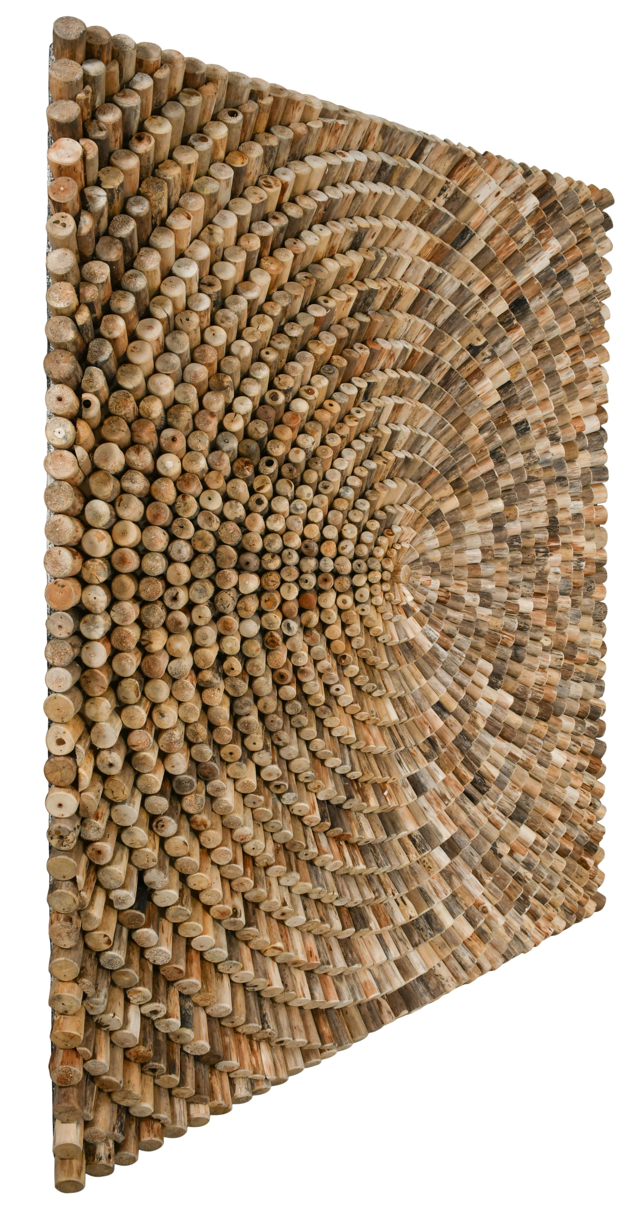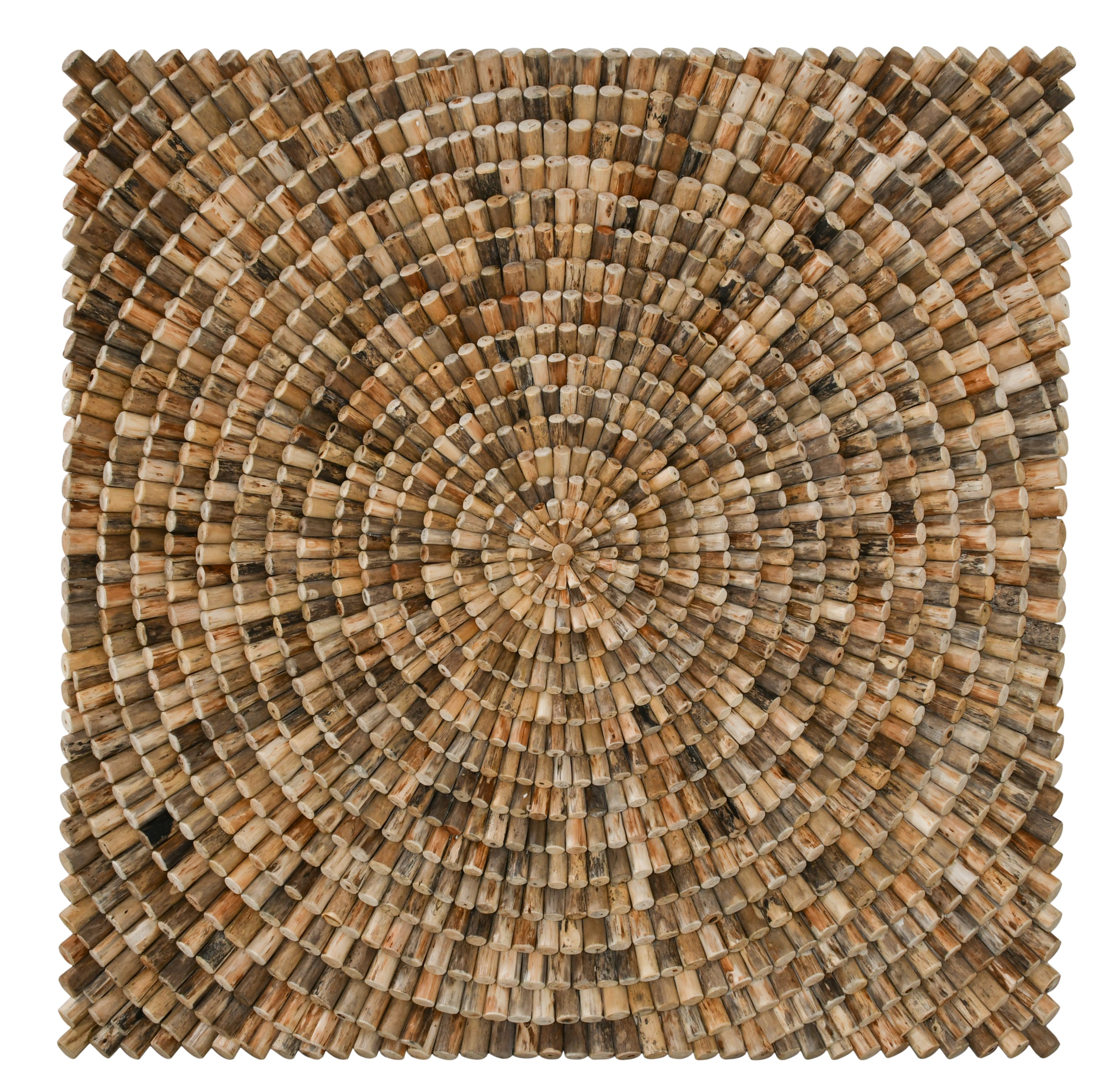 Offering an imported exotic Wood Wall Art Large Square 60 Inch Diameter. Hand crafted in solid wood creating a uniquely designed cork affect. A very unusual design that will become a favorite in any setting it gets displayed. The large scale creates a very dramatic affect. Made in Indonesia by our local craftspeople. You may also consider the Wood Wall Art Large Round 60 Inch Diameter for a similar design offering a mesmerizing round affect.