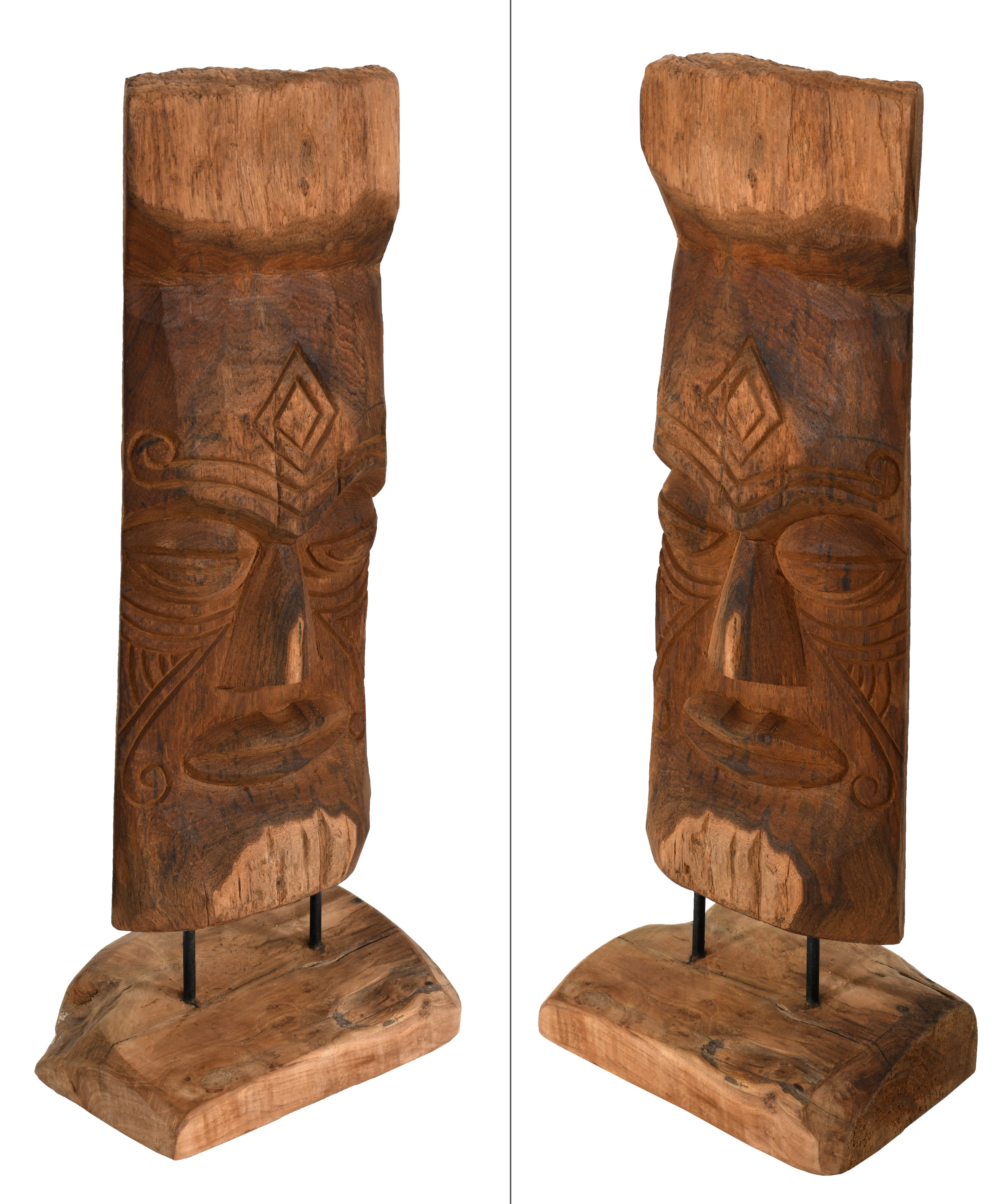 Hand carved in solid heavy pieces of teak wood that are carefully selected. Skilled artisans chisel and carve the wood releasing the spirit of the wood into the design of the mask. Inspired by traditional Indo Pacific Island culture, each Tiki Mask is finished to an aged look of a vintage piece. Available in multiple sizes as well as a Wall Hanging, the authentic look and quality craftsmanship will make your choice of Tiki Mask a nice addition to your space.