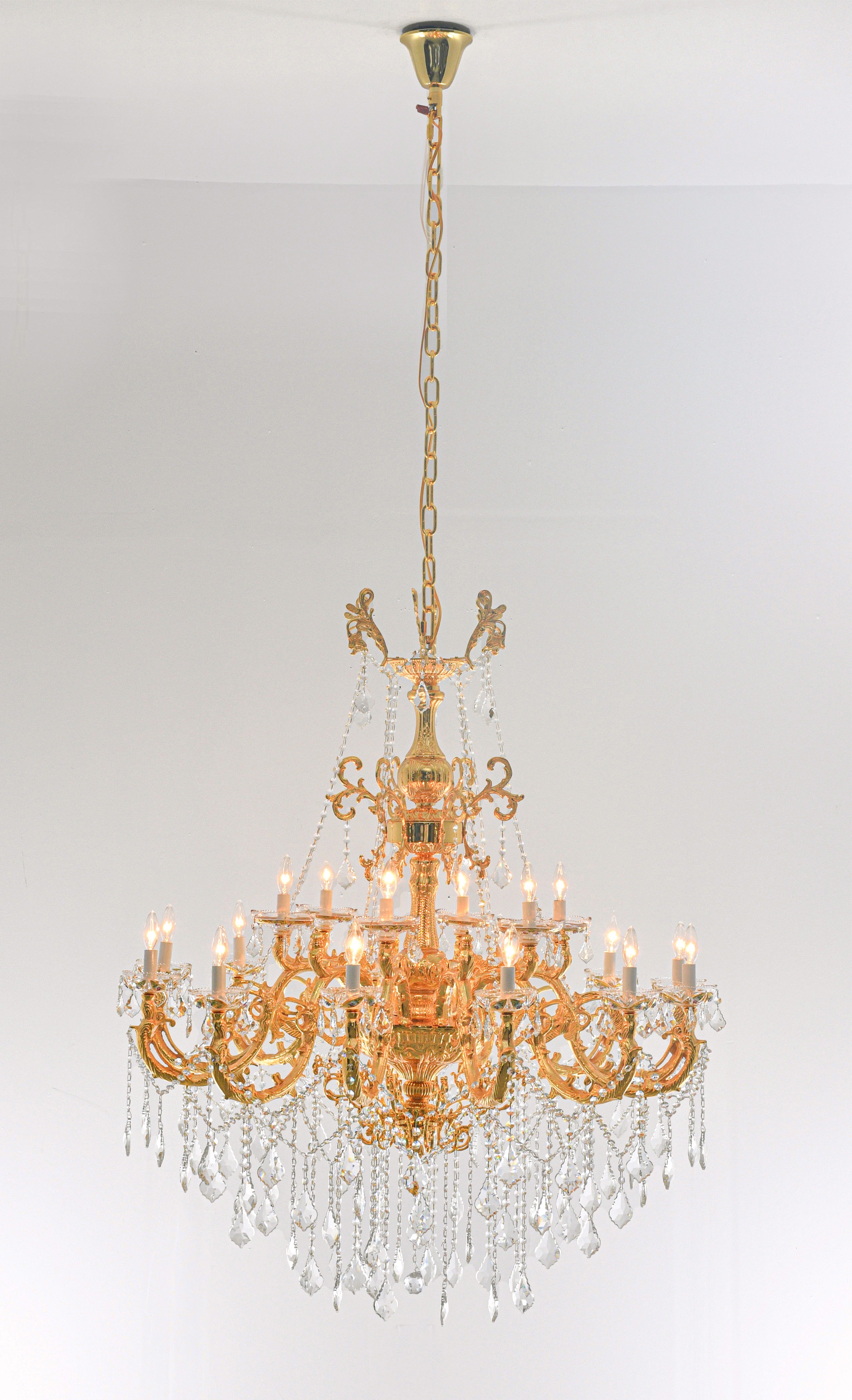 Bulbs not included Material: Steel, Crystal and Glass Crystal :Yes Lead Content:0.3 Crystal Origin:Egypt Weight Lb:61.6 Bulbs:18 Watt :60W Switch:E12 Product Ul :Yes Wiring Ul :Yes Socket Ul :Yes Assembly :Need To Be Assembled