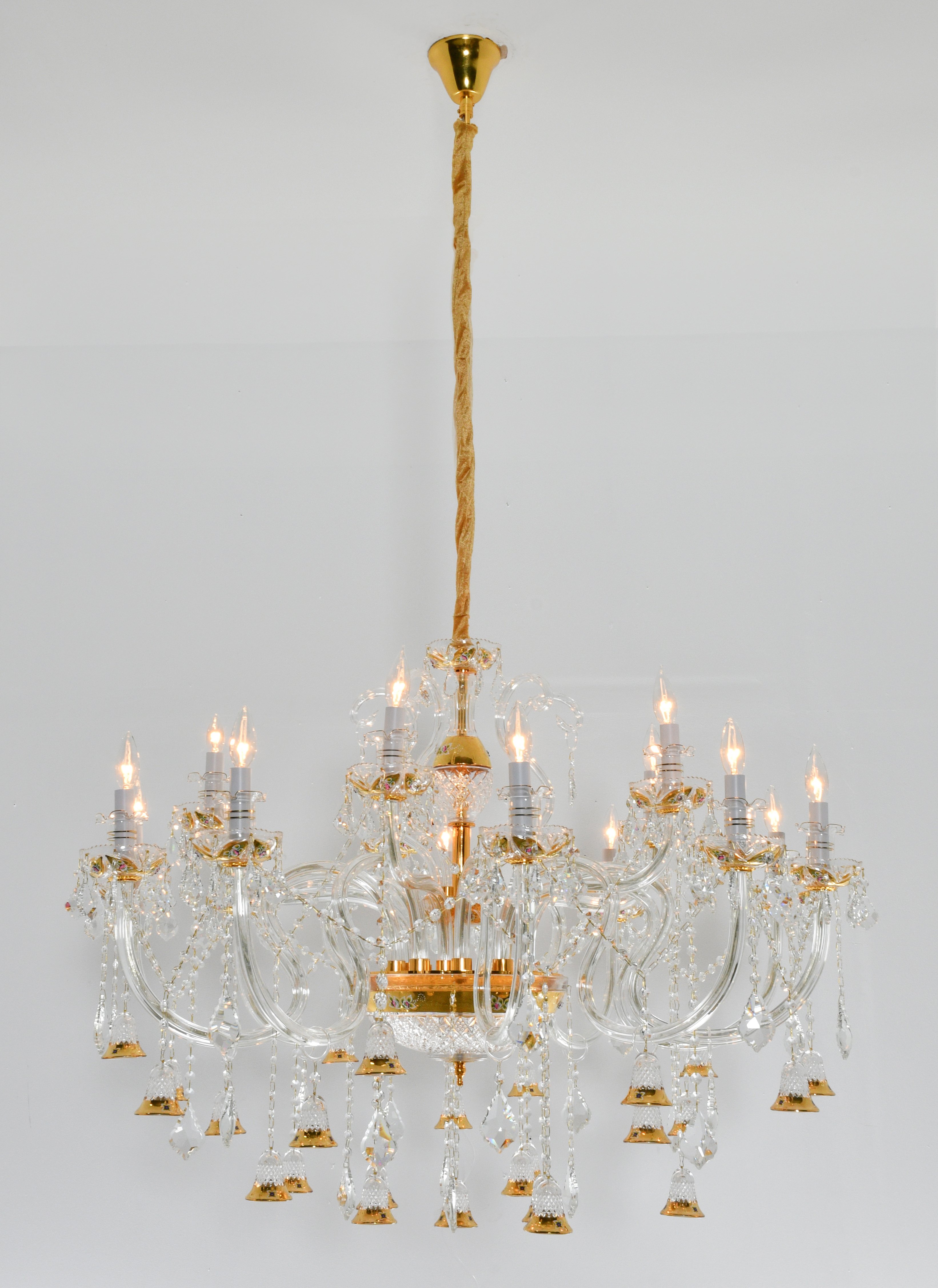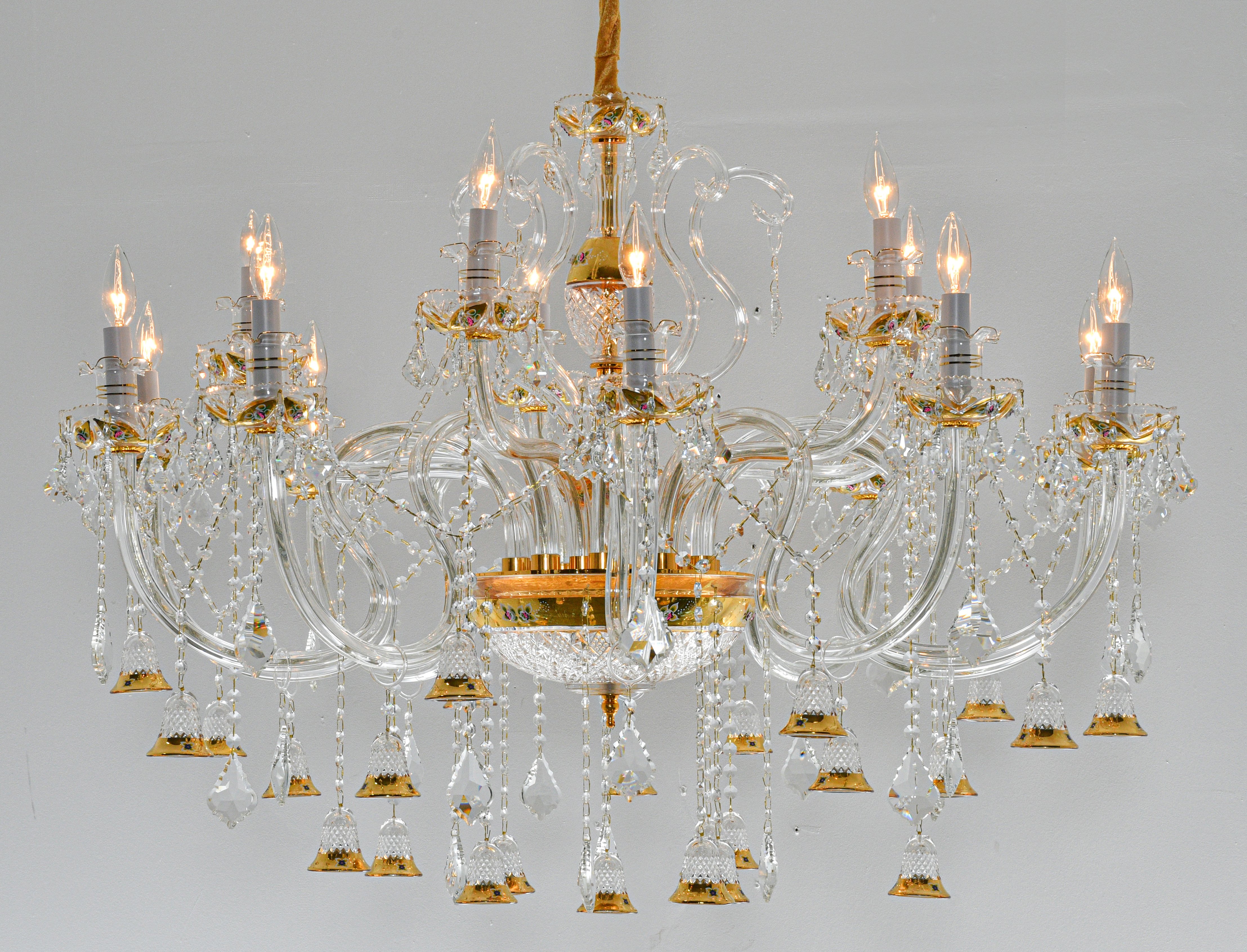 Bulbs not included Material: Steel, Crystal and Glass Crystal :Yes Lead Content:0.3 Crystal Origin:Egypt Weight Lb:53.9 Bulbs:24 Bulb Type: Watt :60W Switch:E12 Product Ul :Yes Wiring Ul :Yes Socket Ul :Yes Assembly :Need To Be Assembled
