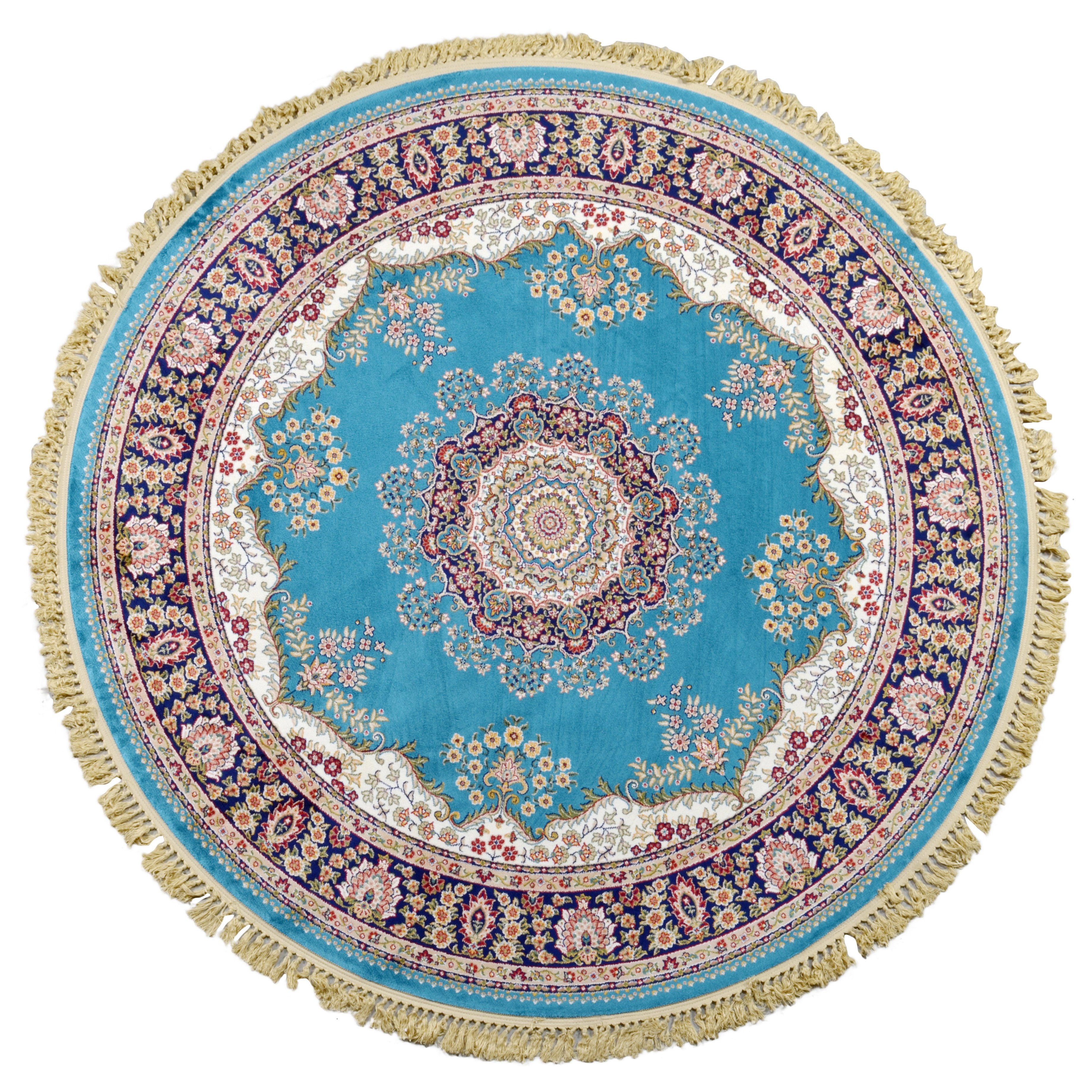 One of the newest additions is this beautiful 7 x 7 foot room sized rug from our spectacular, Kashan Design Blue Collection. So striking in beauty and first impression. This is spectacular color combination with Turquoise Teal Blue Fields surrounded by exciting accent colors offering contrast with dark Black Blue, Cream and touches of Burgundy. Designer's understand that floor is the foundation of any well designed room as we naturally look were we walk. This Kashan Design Blue Palace Rug will create a stunning first impression and will certainly help define spaces, accent furniture, or simply add some welcome color and texture to a room. The history of Kashan design's originate from Kashan an oasis town along the Kavir desert, in central Iran. It is one of the oldest cities in Iran, As early as the 17th century Kashan had a well established silk area rug industry. Coveting by kings, at one time it was commonplace to see Kashan rugs hanging on palace walls all over the world. It is for this reason that it is also referred to as the palace carpet. This modern interpretation is manufactured using a lustrous Viscose pile referred to also as synthetic silk. When combined with its 1 million point manufacturing detail made possible by production using a state of the art face-to-face power loom assures the highest consistent quality across all its designs. There are many popular sizes offered in this TIMELESS TREASURES RUG COLLECTION, consider matching this rug with one of its runners for a fresh take of style and color in Timeless Old World Luxury!
