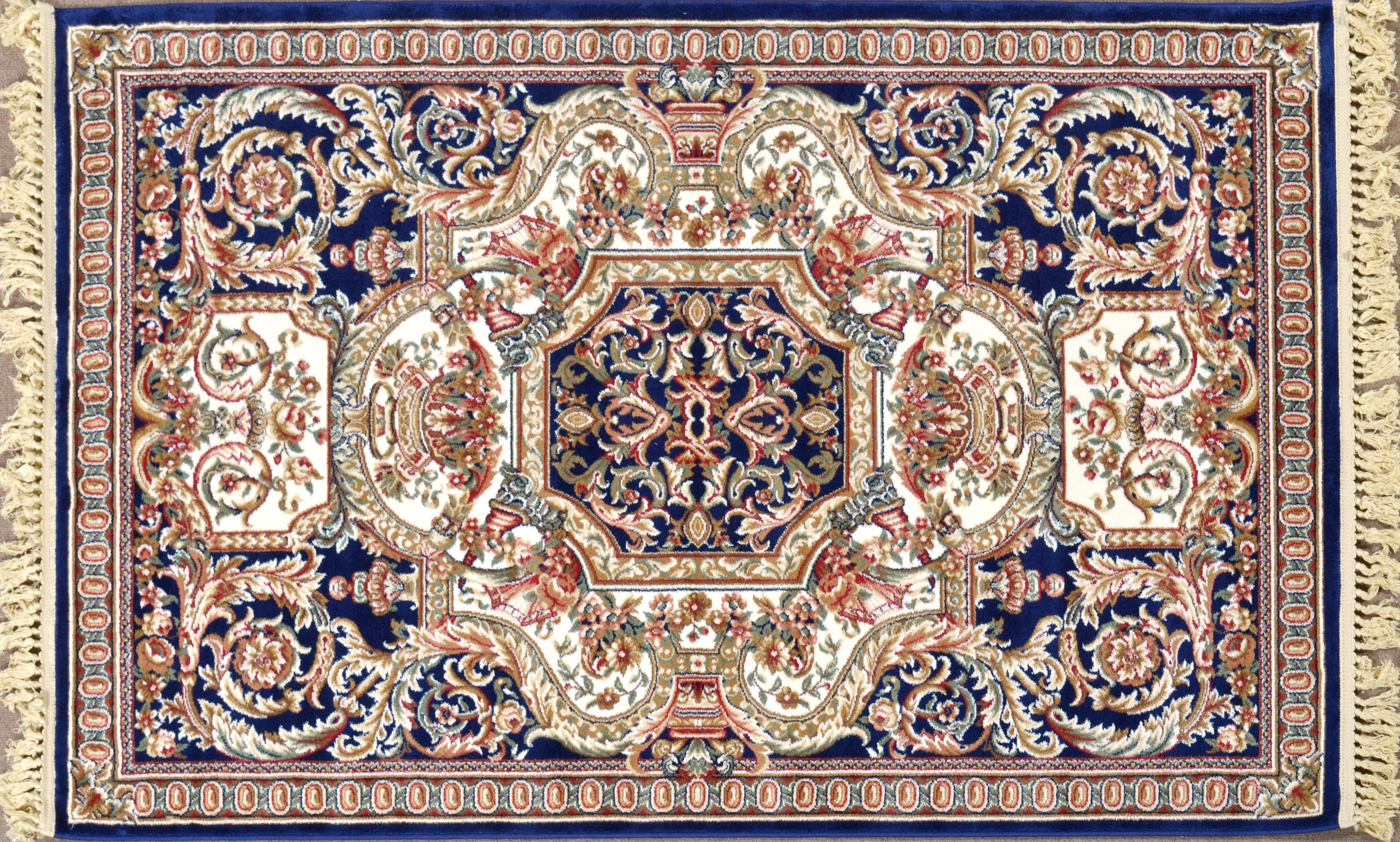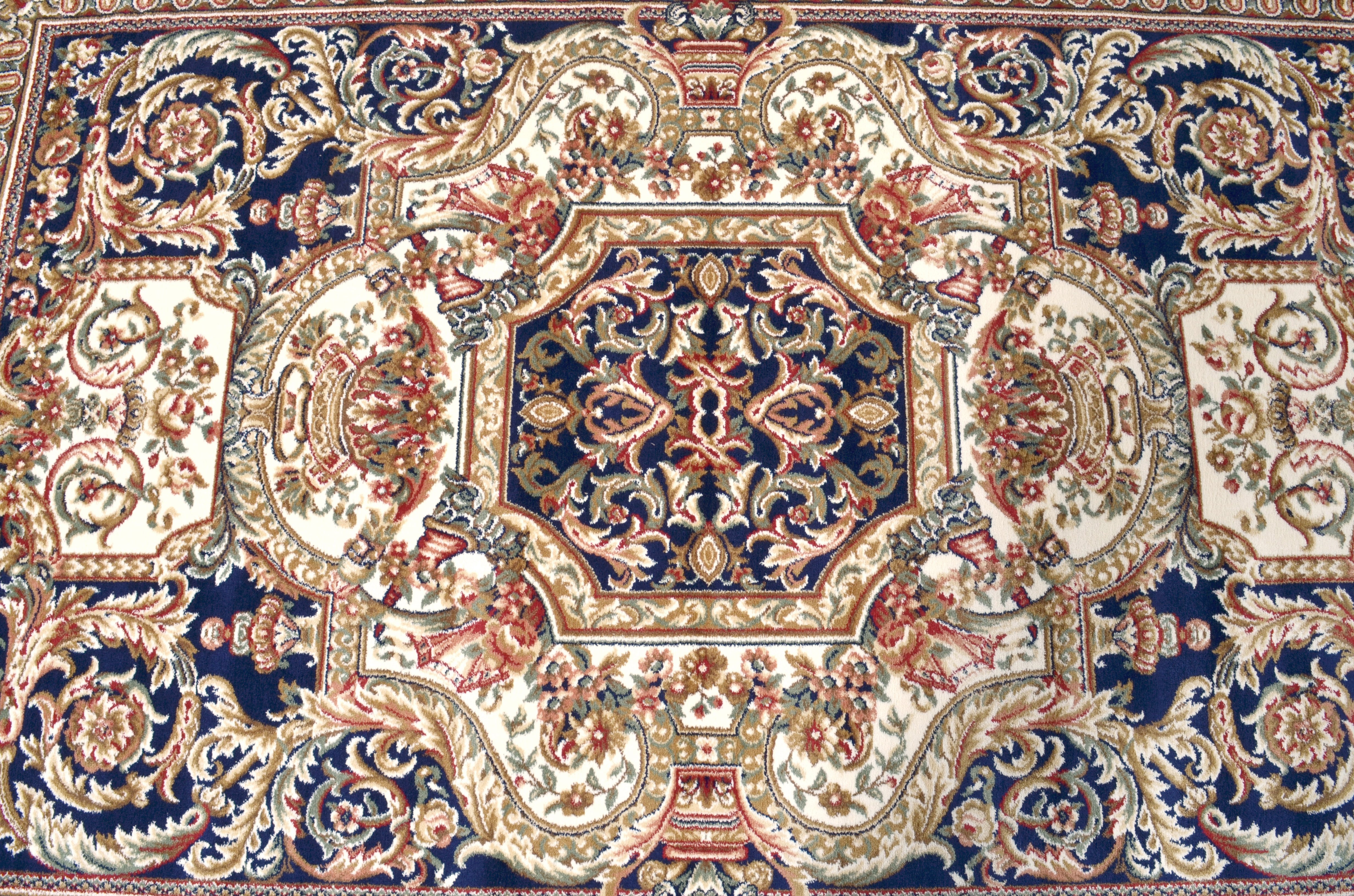 Offered is a ROYAL Aubusson BLACK BLUE AND IVORY 4 x 6 foot beautiful accent rug. Perfect for a front entry or anywhere a beautiful round rug would look best. This dramatic design features a royal dark Black Blue body with classic Aubusson accent details and with Ivory contrasts. This pleasing French Designed Rug will help define spaces, accent furniture, or simply add some welcome color and texture to a room. The history of Aubusson design dates back to the 14th century. The town of Aubusson is located in the La Marche area of France. This modern interpretation is manufactured using a lustrous Viscose pile referred to also as synthetic silk. When combined with its 1 million point manufacturing detail made possible by production using a state of the art face-to-face power loom assures the highest consistent quality across all its designs. There are many popular sizes offered in this TIMELESS TREASURES RUG COLLECTION, consider pairing this with one of its Aubusson designed Matching room sized rugs or runners for a complete luxurious Interior!
