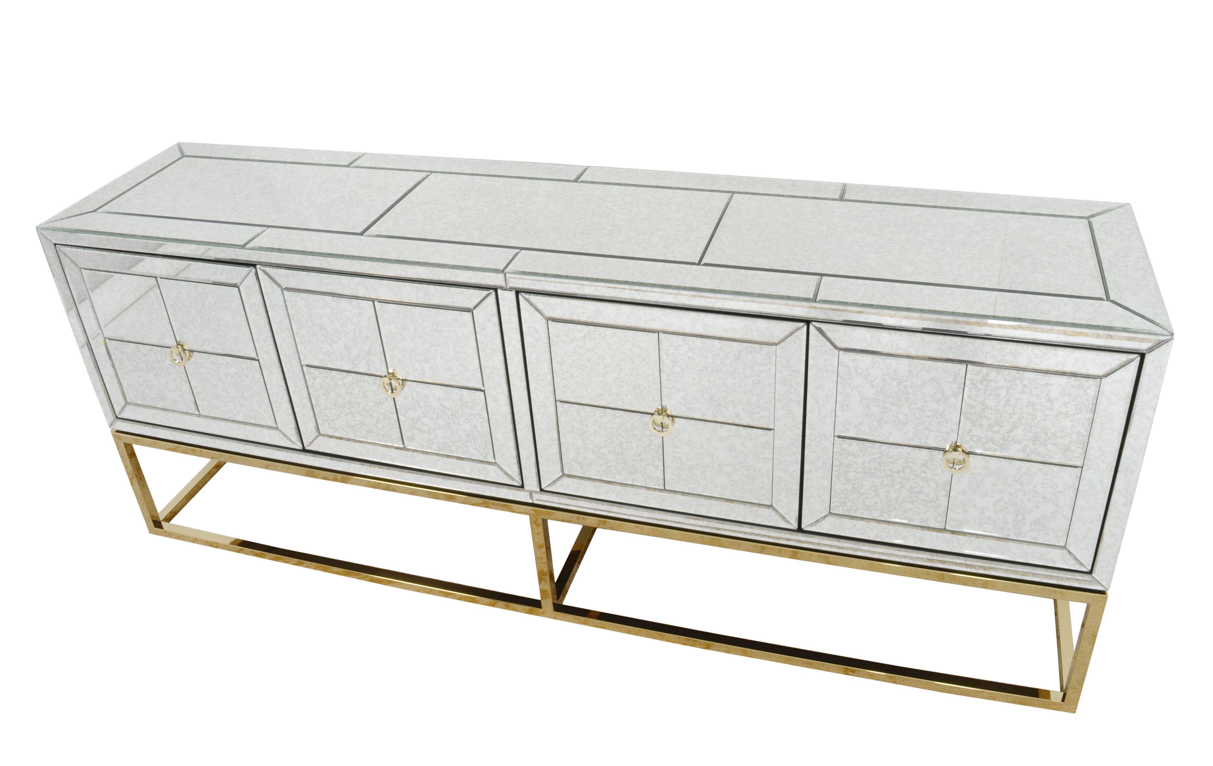 Contemporary design -Marbled mirror glass with gold highlights-Touch open Doors -one interior shelf -Great for a TV Platform