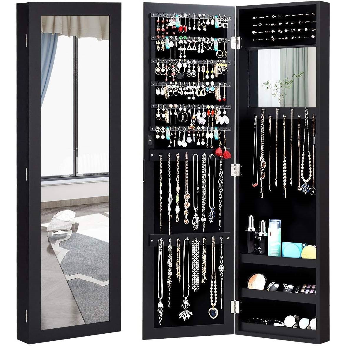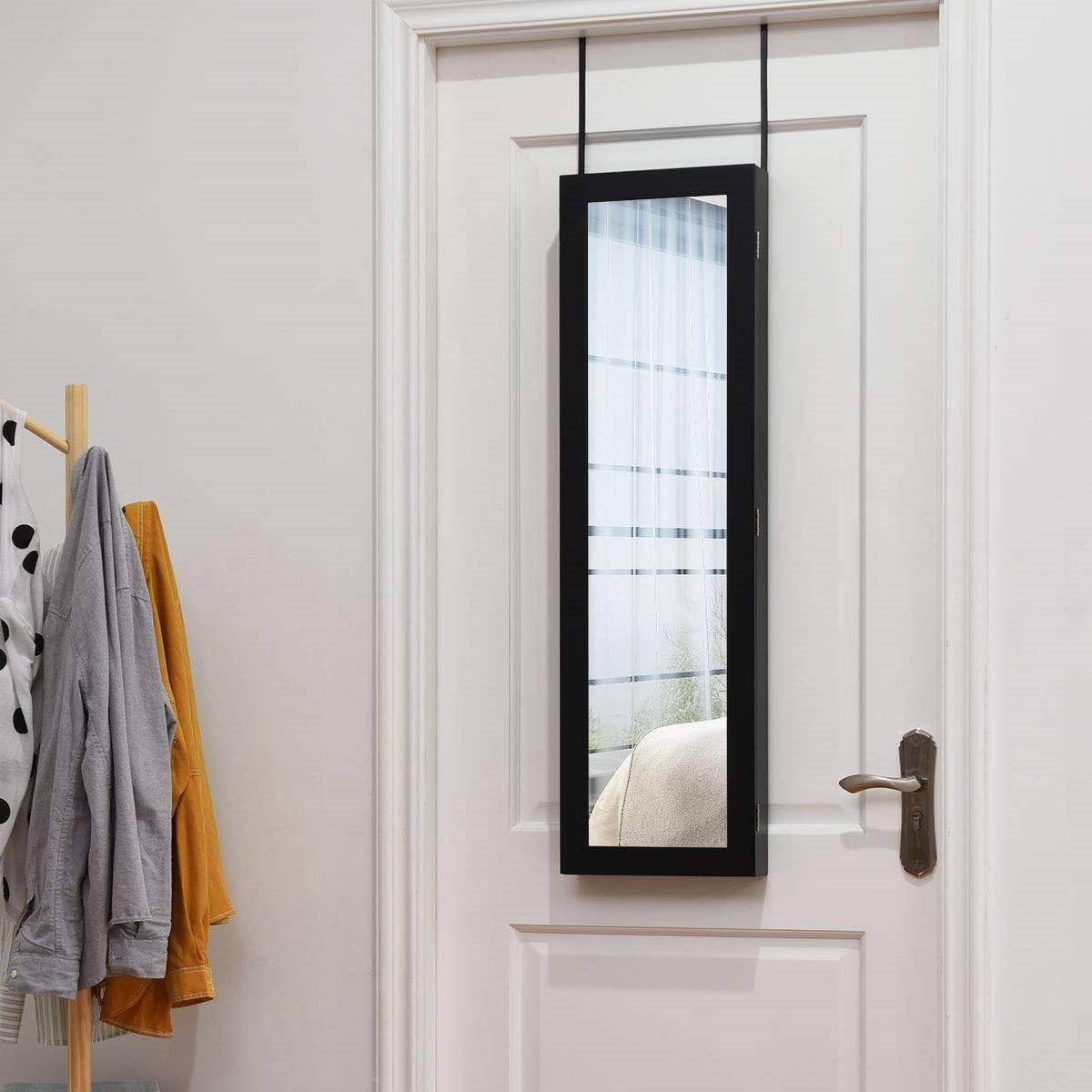 • 2-in-1 Black Wall or Door Mounted Jewelry Organizer Full Length Mirror