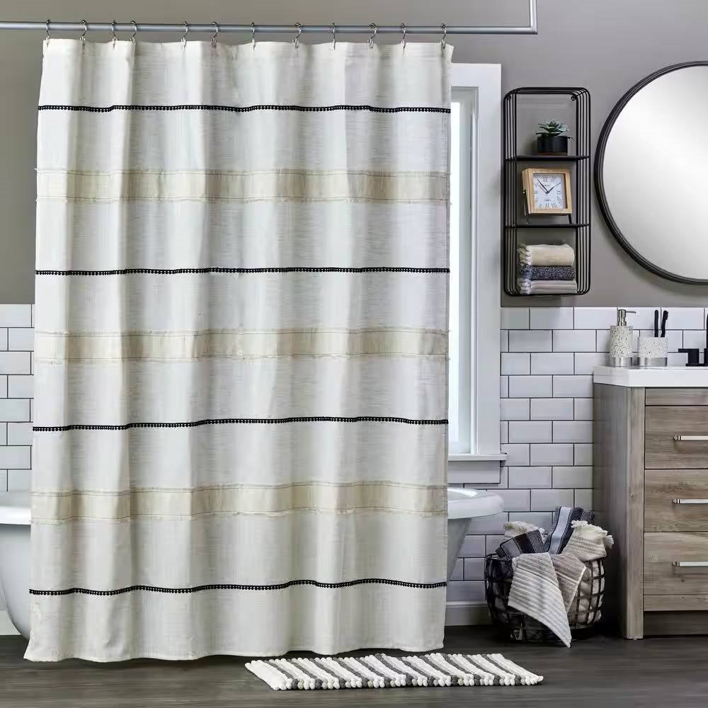 72-inch Polyester/Linen Fabric Shower Curtain in Beige with Black Stripes 72-inch Polyester/Linen Fabric Shower Curtain in Beige with Black Stripes 72-inch Polyester/Linen Fabric Shower Curtain in Beige with Black Stripes