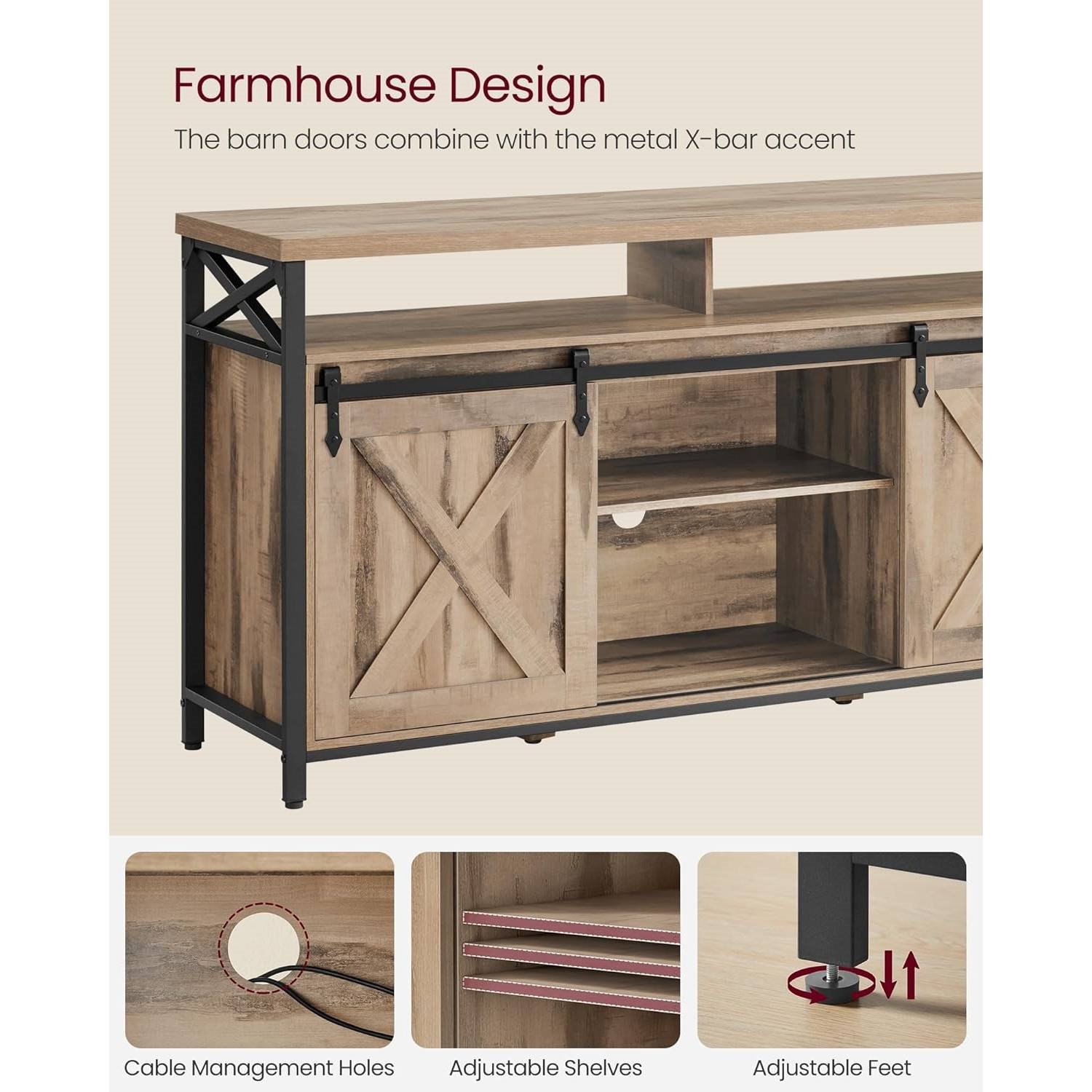 • Modern Farmhouse TV Stand with Sliding Barn Doors for TV up to 65-inch