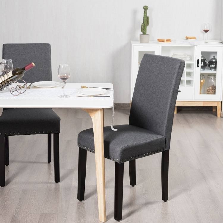 Home > Set of 2 Grey Linen Upholstered Nailhead Dining Chair - 330 lbs. Weight Capacity