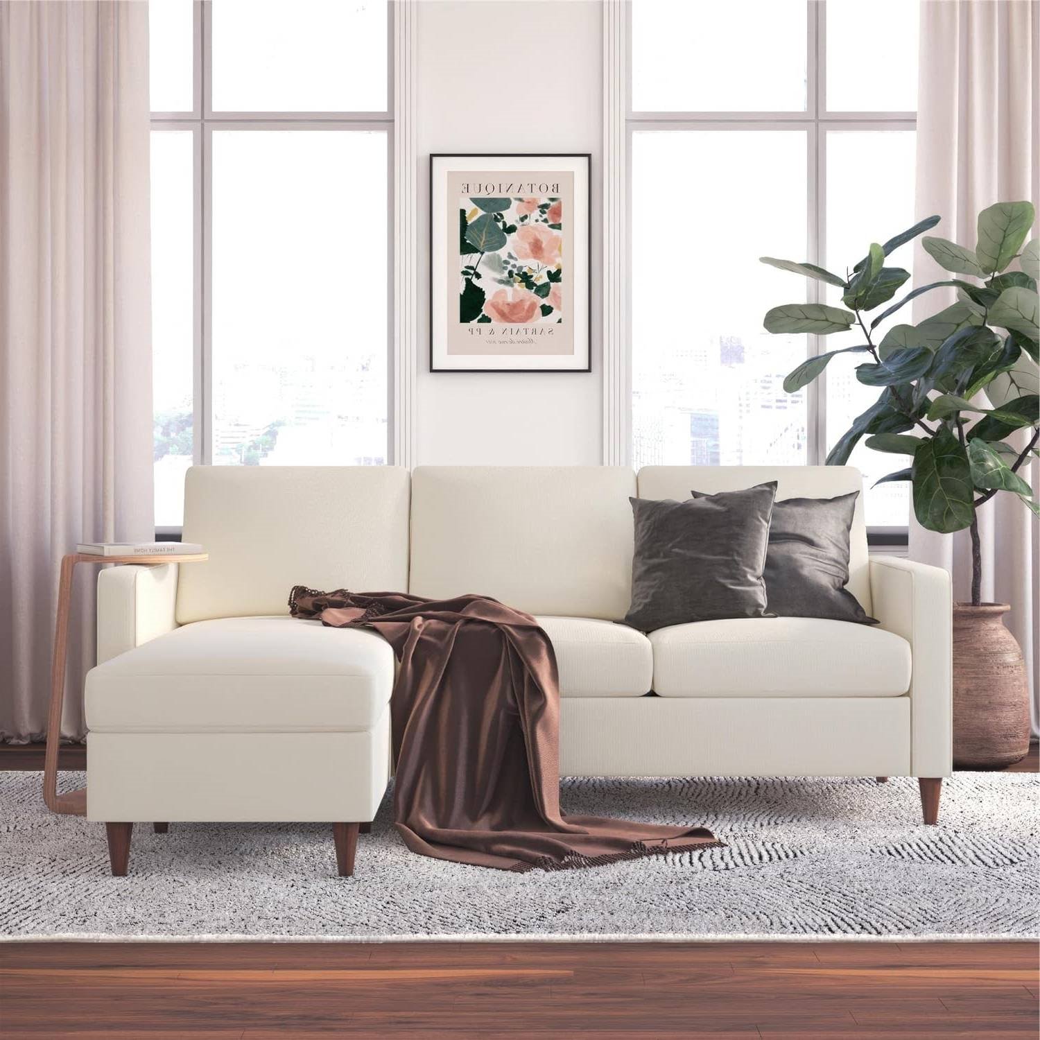 • Contemporary linen fabric upholstered sectional sofa adds character and comfort to your living room while adding depth to small spaces thanks to its lean profile. Its reversible chaise can be placed on either side to fit any room layout or converted into a standalone sofa and ottoman for added design choices
