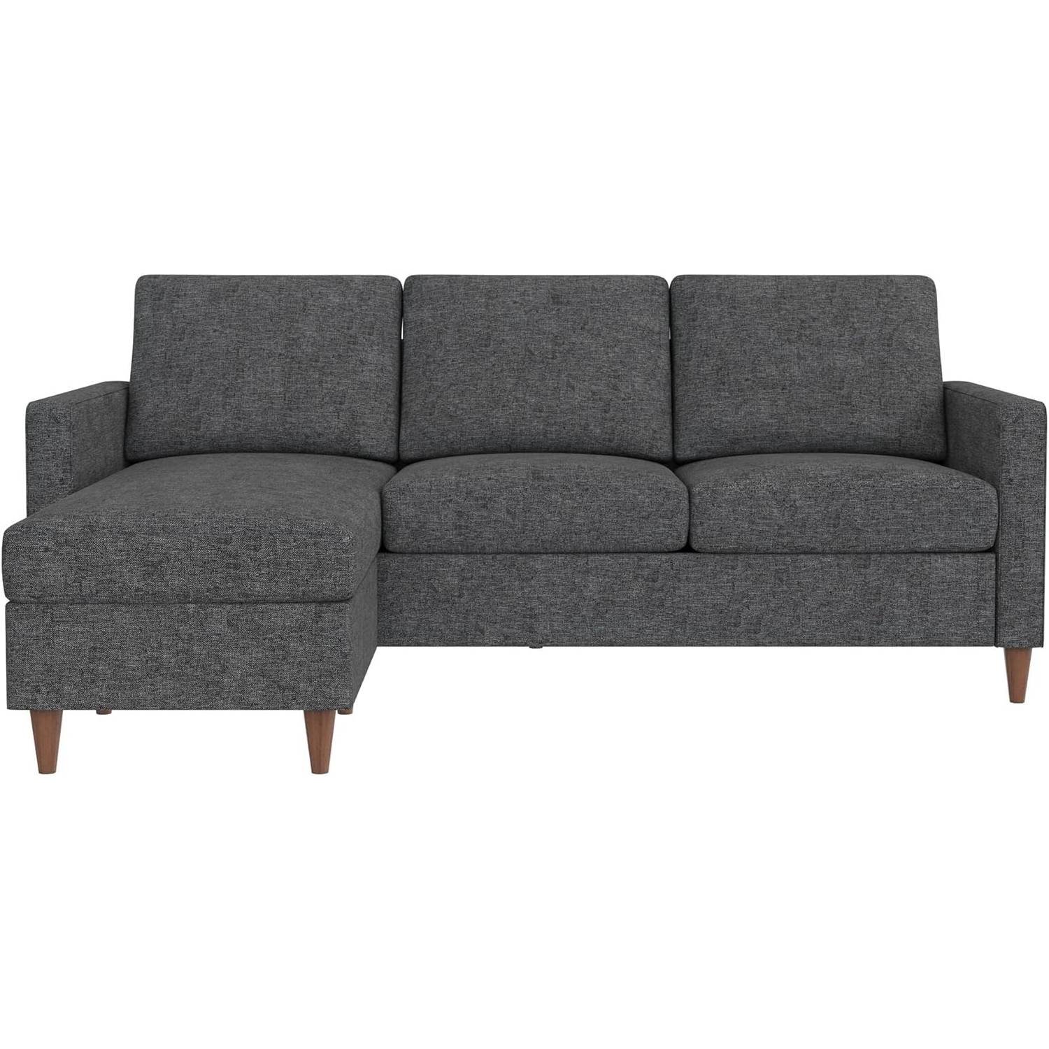 Home > Mid-Century Modern Left or Right Facing Sectional Sofa in Dark Grey Linen