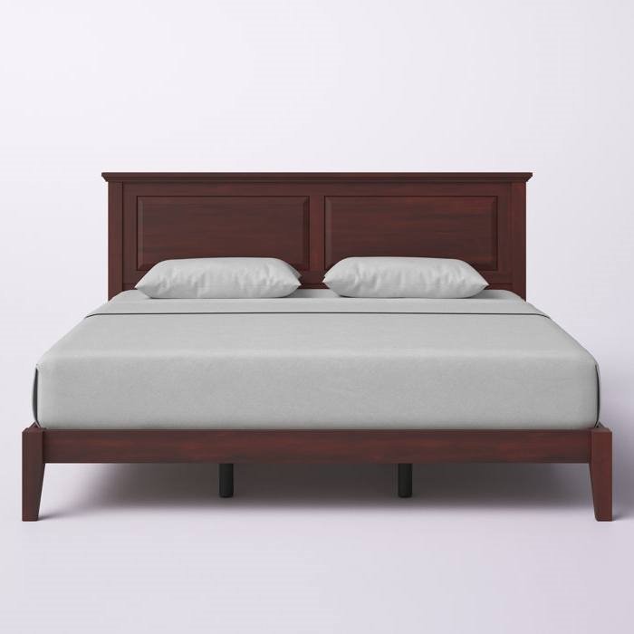 King Traditional Solid Oak Wooden Platform Bed Frame with Headboard in Cherry