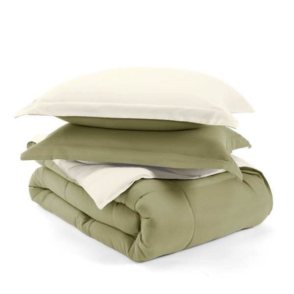 Home > King/Cal King 3-Piece Microfiber Reversible Comforter Set in Sage Green/Cream