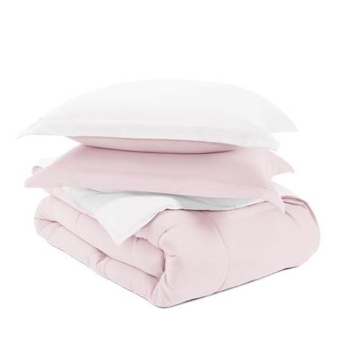 Full/Queen 3-Piece Microfiber Reversible Comforter Set in Blush Pink and White