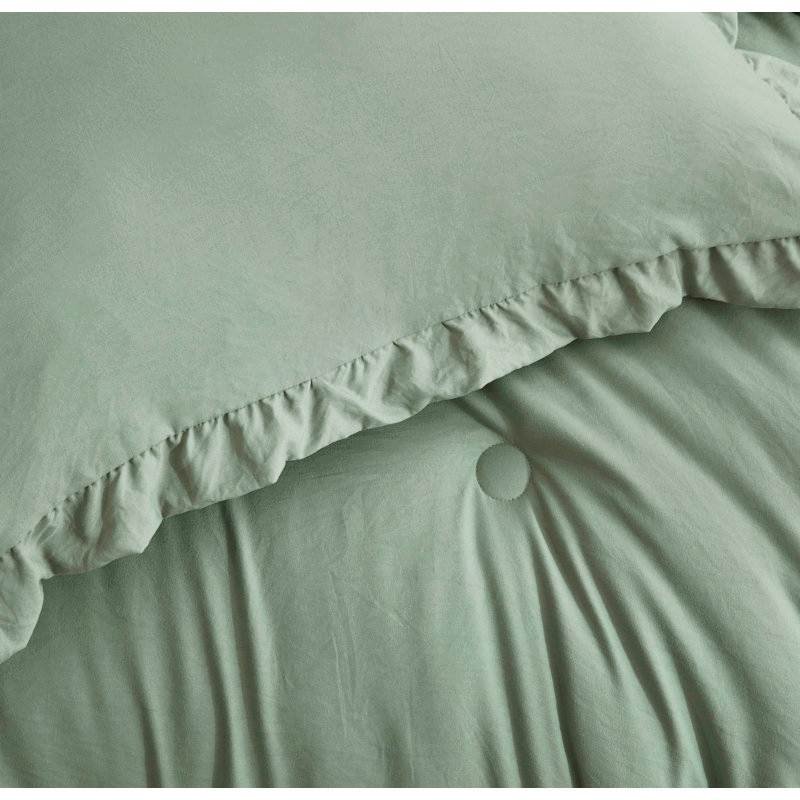 Oversized Queen Sage Microfiber 3-Piece Comforter Set with Ruffled Edge Trim