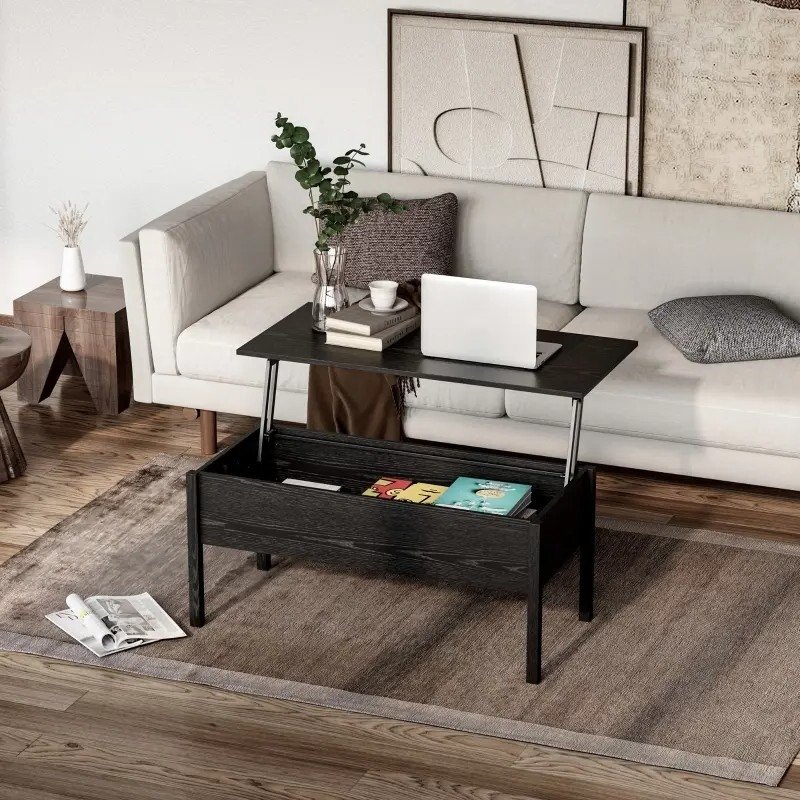 Modern Black Lift Top Coffee Table w/ Hidden Storage
