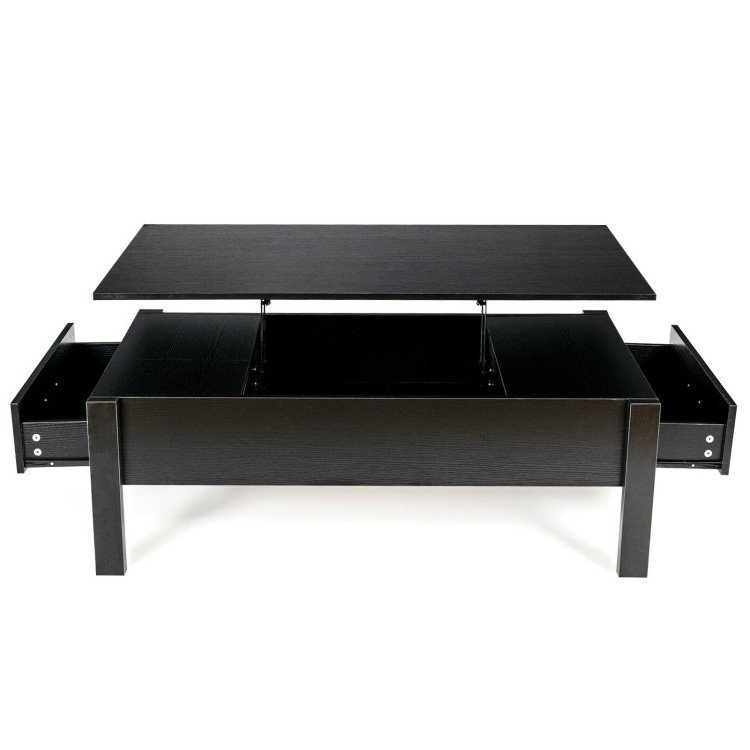 Modern Black Wooden Lift Top Coffee Table with 2 Side Drawers