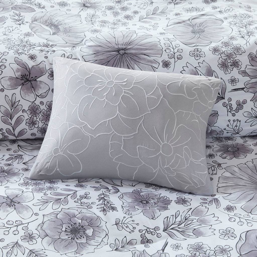Queen size 8-piece White Grey Floral Pattern Microfiber Comforter Set