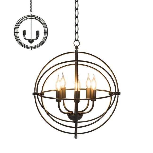 This 5 Light Brass Rustic Industrial Rotating Metal Chandelier is a perfect addition to any bedroom, dining, or living room. This ceiling light chandelier is made of strong iron frame structure and has a great support. The whole coil of the lamp can be rotated and adjusted, so you can adjust it yourself according to your needs. 5 lamp holders are compatible with all shapes of E12 bulbs. Bulbs NOT Included