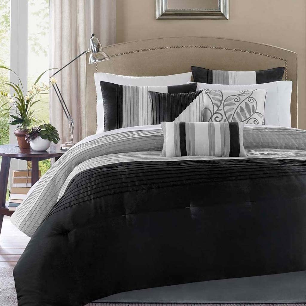 King Size 7 Piece Bed In A Bag Comforter Set Faux Silk Black Gray Stripes King Size 7 Piece Bed In A Bag Comforter Set Faux Silk Black Gray Stripes King Size 7 Piece Bed In A Bag Comforter Set Faux Silk Black Gray Stripes King Size 7 Piece Bed In A Bag Comforter Set Faux Silk Black Gray Stripes King Size 7 Piece Bed In A Bag Comforter Set Faux Silk Black Gray Stripes
