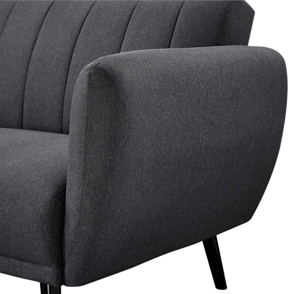 Modern Scandinavian Dark Grey Linen Upholstered Sofa Bed with Wooden Legs