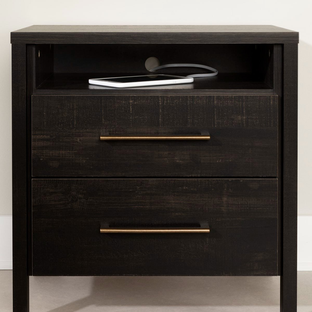 Modern Java 2 Drawer Nightstand Cubby Storage Shelf