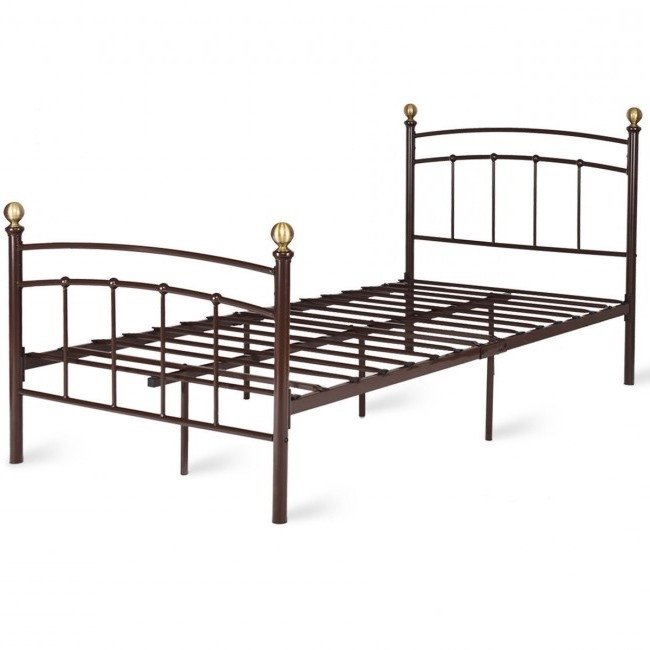 Dark Brown Gold Tops Metal Platform Bed in Twin Size Dark Brown Gold Tops Metal Platform Bed in Twin Size