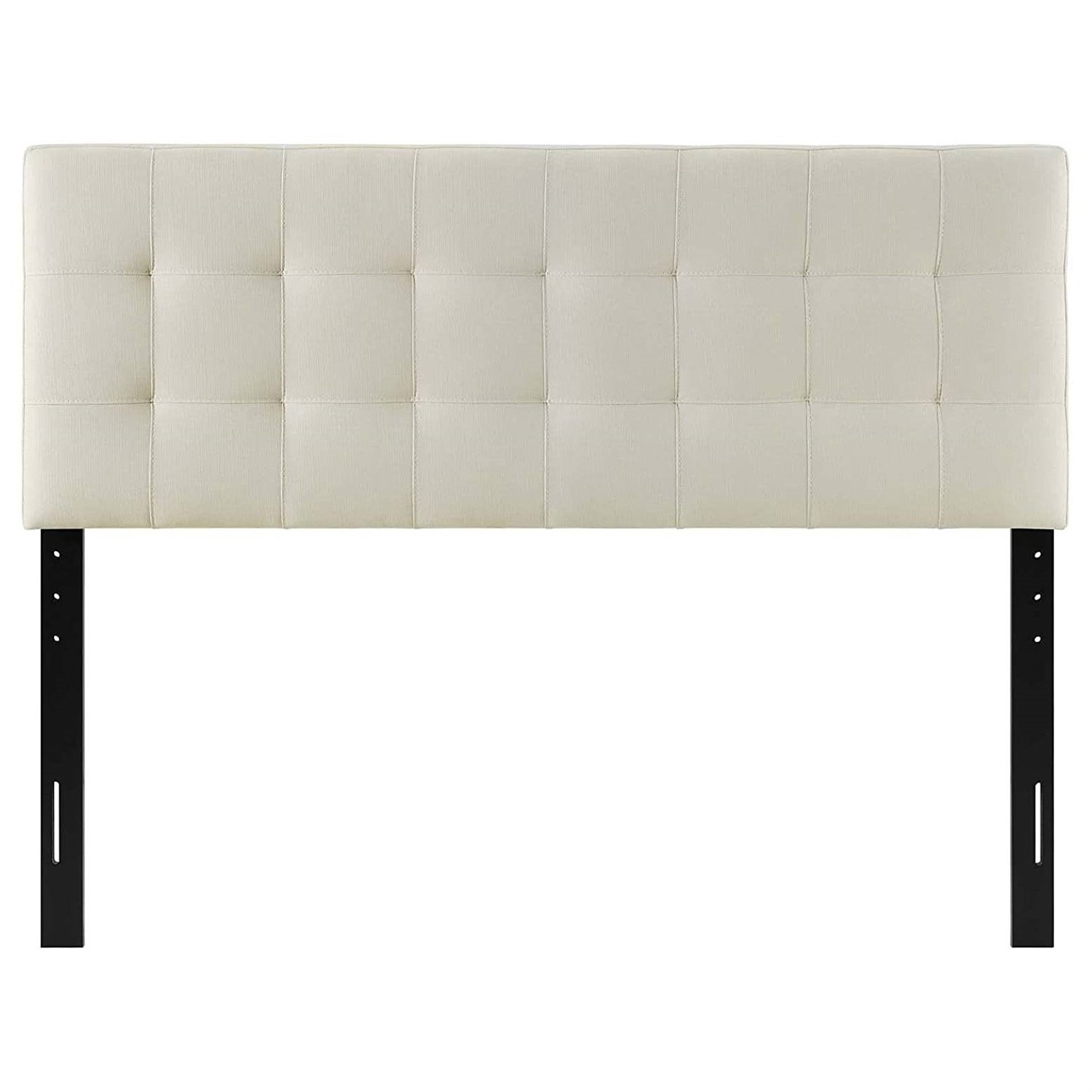 Add elegance to your bedroom with this Full size Ivory Fabric Upholstered Tufted Headboard. Designed with just the right amount of grace, Emily is made from fiberboard, plywood, and fine polyester upholstering for a construction that is both lightweight and long-lasting. Perfect for contemporary and modern bedrooms, sleep soundly with a piece that imparts a sense of tranquility amidst an impressive backdrop of style. Fits full size beds. Set Includes: One - Full Headboard Product Dimensions: Overall Product Dimensions: 3.5"L x 56"W x 45 - 52.5"H Floor to bottom of Headboard: 23 - 30.5"H.