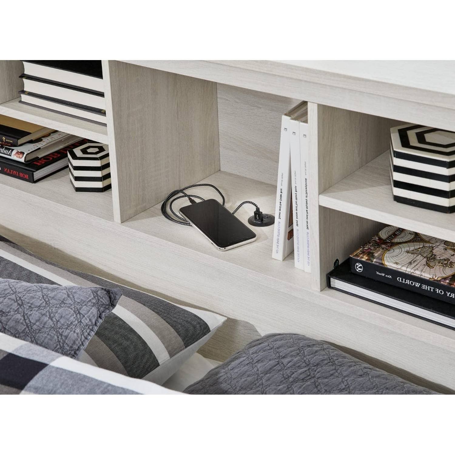 • Queen size Farmhouse Storage Headboard in Rustic White Wood Finish