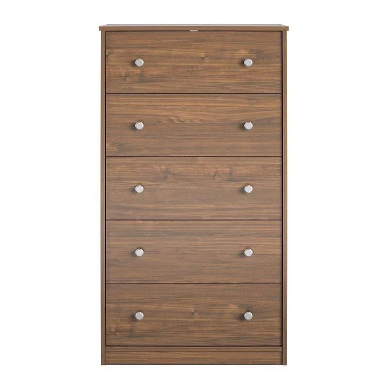 Home > Modern 5-Drawer Bedroom Chest of Drawers in Rustic Walnut Wood Finish