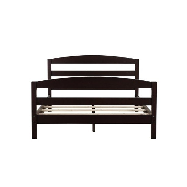 It's the perfect time to update your kids, guest room, or bedroom décor with the Full Size Minimalist Platform Bed Headboard Footboard in Espresso. This sturdy full size bed’s minimalist design features an arched, open-slat headboard and matching footboard for a simple yet stylish profile. The side rails and slats are included and no boxspring is needed.