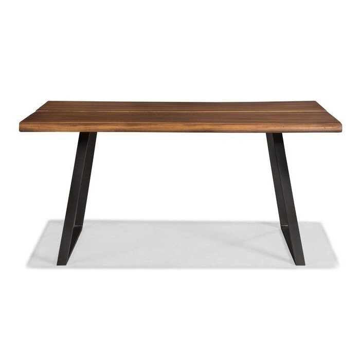 Give your dining room an industrial look with this Farmhouse Oak Industrial Dining Table. This versatile design goes well with several chair types, features robust and sturdy construction made of 100% solid pine wood. Its distressed and rustic finish is very durable and easy to touch-up. Natural wood elements make each unit unique while the machine-cut shape creates consistency in shape and quality.