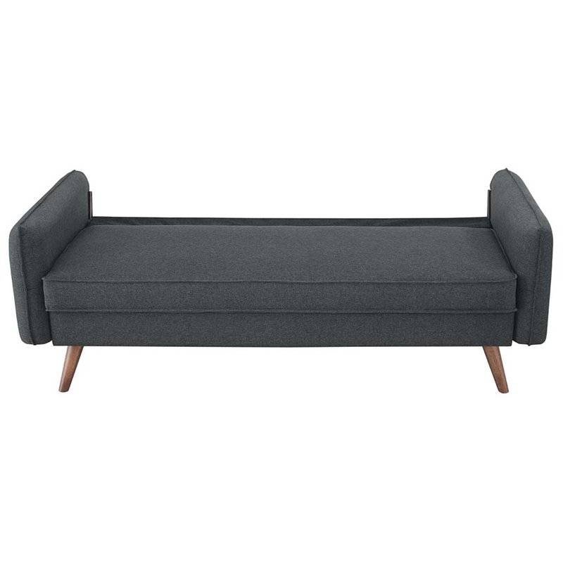 • Clean lines and splayed wood legs offer mid-century inspiration to this modern sofa