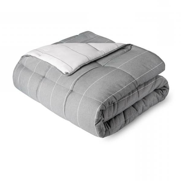 • Stylish chambray-inspired pin-striped cover eliminates need for duvet cover