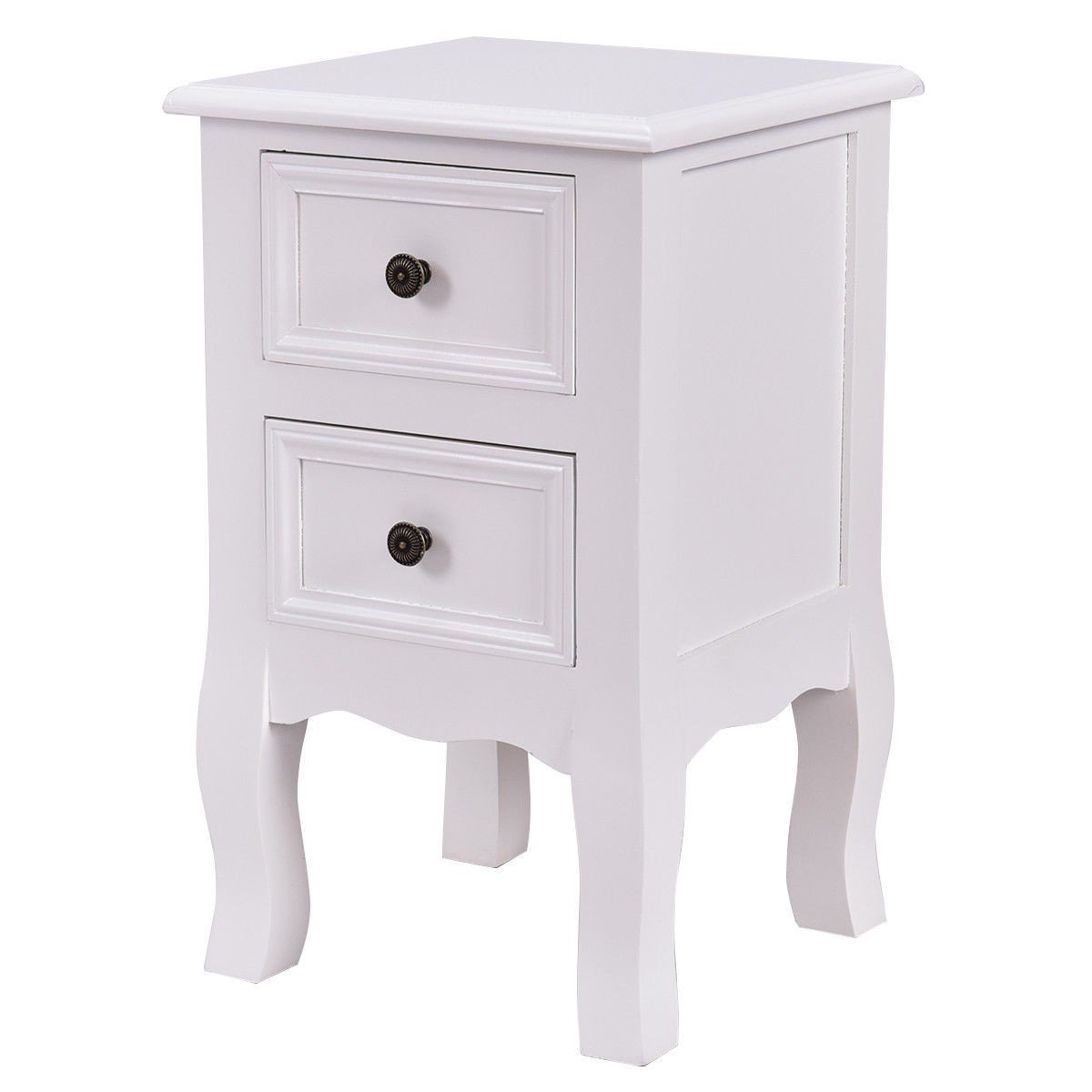 This White Wooden 2-Drawer Accent End Table Nightstand is a perfect addition for home decor. The pretty color matches your home settings easily. You can place it anywhere in your home. The nightstand or accent table has plenty of storage including one drawer and one cabinet, which thoughtfully help you store all the little things. It will give you a neat and clean home. Don't hesitate to buy it! Durable Solid Wood Frame: This White Wooden 2-Drawer Accent End Table Nightstand uses solid wood as frame to avoid warp or damage easily. It greatly extends the night stand service life. Exquisite Workmanship: We specially designed the night stand legs with graceful arc and table edges are carefully polished to provide intimate protection against bump.2 Layers of Storage Space: A perfect piece of home furniture for storage function, with 2 drawers to help you sort out things and make your room clean and neat.
